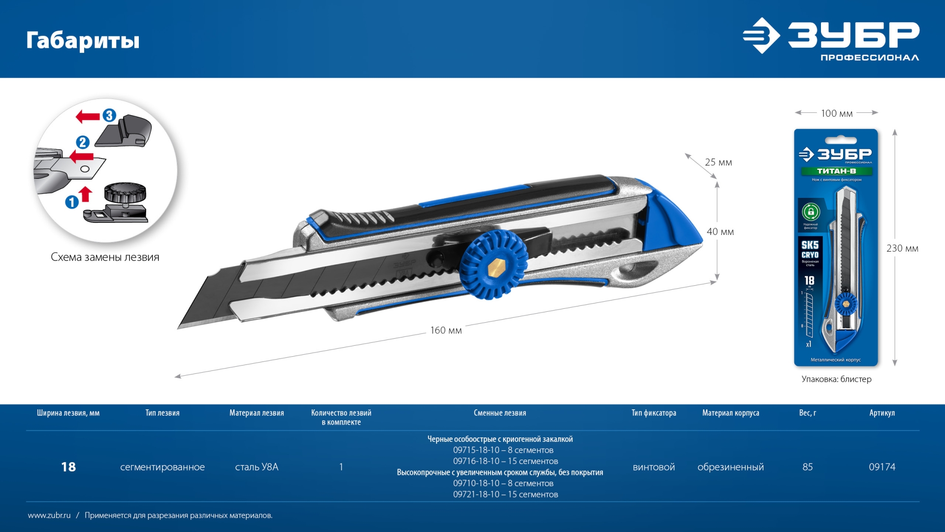 - -Винтовой фиксатор надежно фиксирует лезвие при работе с большими усилиями,