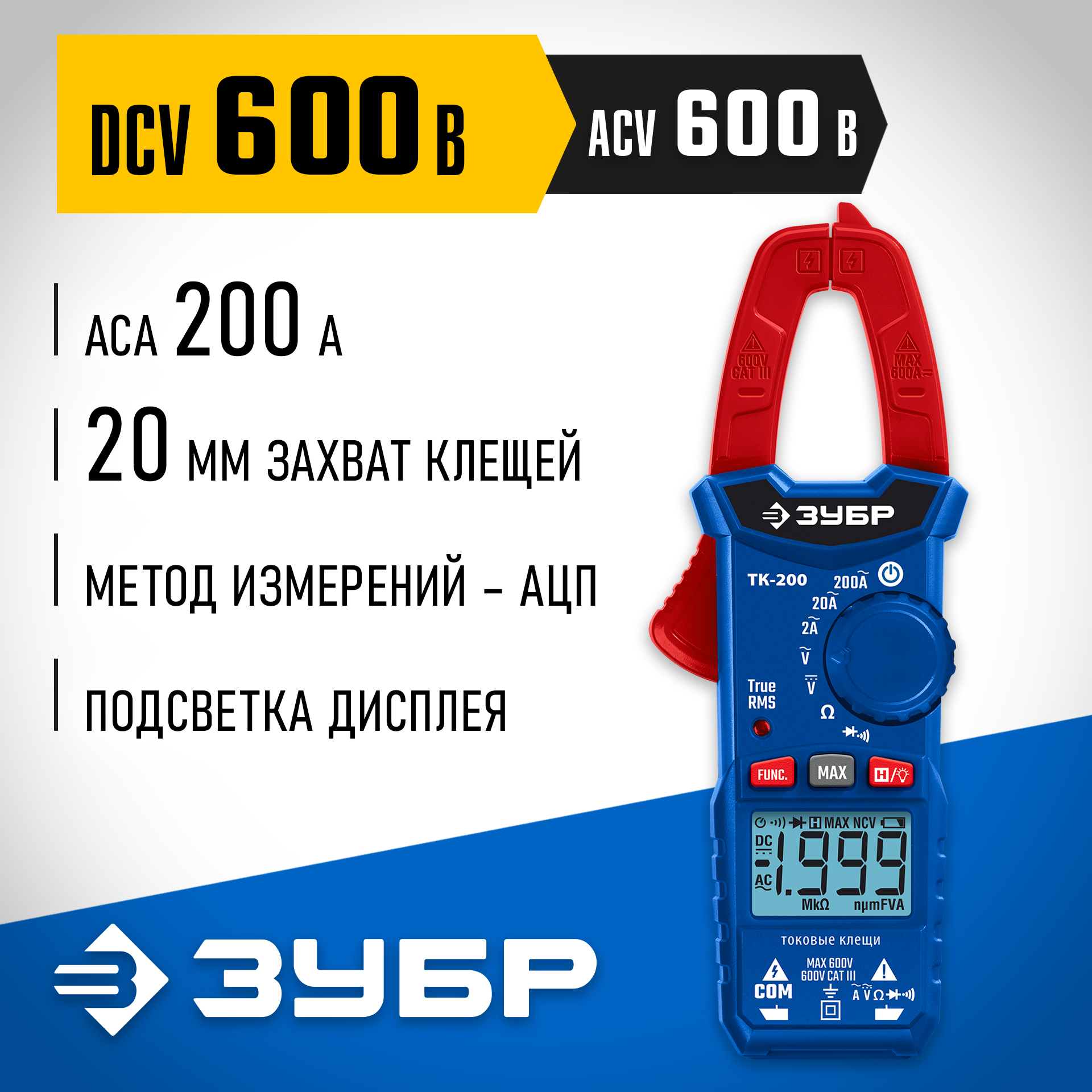 Портативные токоизмерительные клещи – точный прибор с оптимальным спектром измерительных функций. Особая эргономичная и компактная конструкция обеспечат удобство проведения измерений, даже одной рукой. • Высокая точность измерений • Эргономичный корпус • Простое и интуитивно понятное управление • Подсветка ЖК-дисплея • Автоматическое отключение питания • Компактный размер • Захват клещей 20 мм • Сохранение результата измерений (функция Hold) • Сохранение максимальных значений (MAX) • Диодный тест • Прозвонка цепей со звуком • Автоматическая индикация перегрузки • Категория безопасности по ГОСТ Р 52319 (МЭК 61010-1): КАТ III 600 B • Степень защиты по ГОСТ 14254: IP20