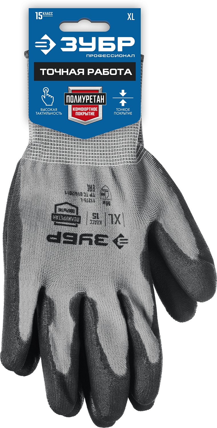 ЗУБР ТОЧНАЯ РАБОТА, L (9), перчатки с полиуретановым покрытием, тонкие, комфортные, для точных работ, 15 класс, Профессионал (11275-L)