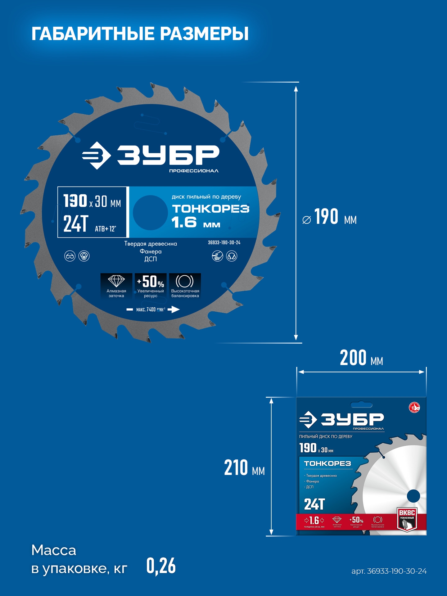 ЗУБР Тонкорез 190х30 x 1.6 мм, 24Т, диск пильный по дереву, тонкий рез, Профессионал (36933-190-30-24)