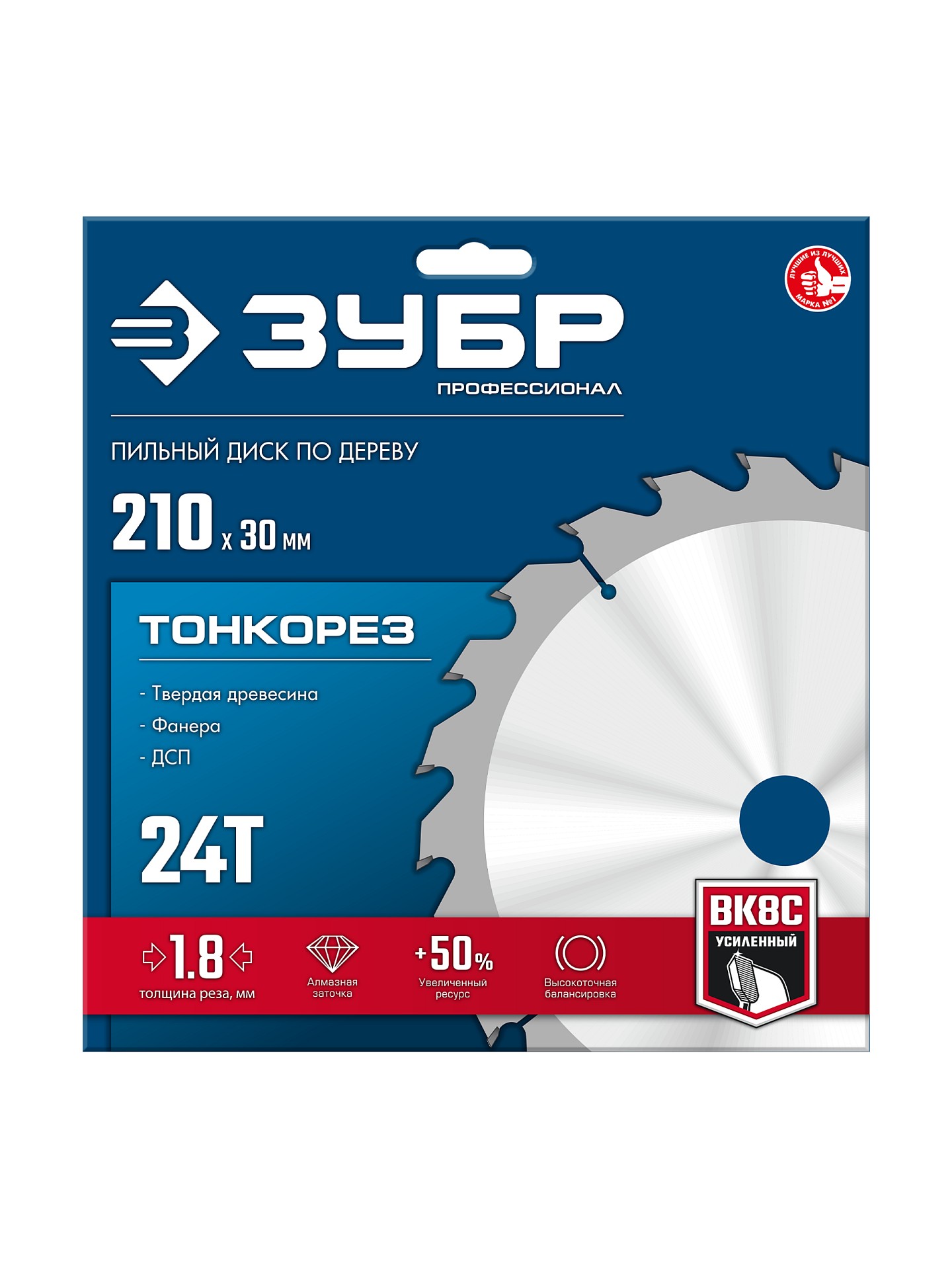 ЗУБР Тонкорез 210х30 x 1.8 мм, 24Т, диск пильный по дереву, тонкий рез, Профессионал (36933-210-30-24)