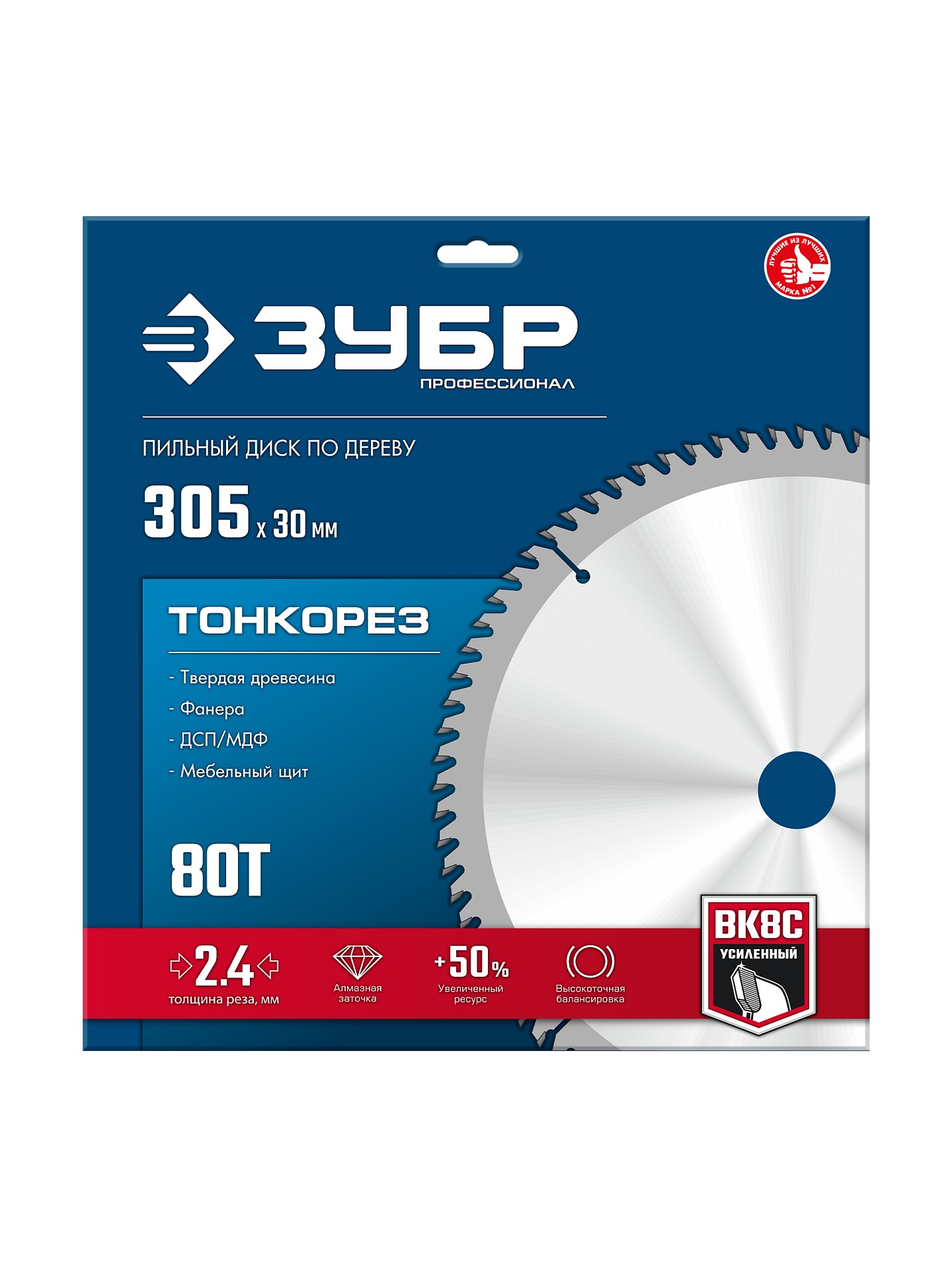 ЗУБР Тонкорез 305х30 x 2.4 мм, 80Т, диск пильный по дереву, тонкий рез, Профессионал (36933-305-30-80)