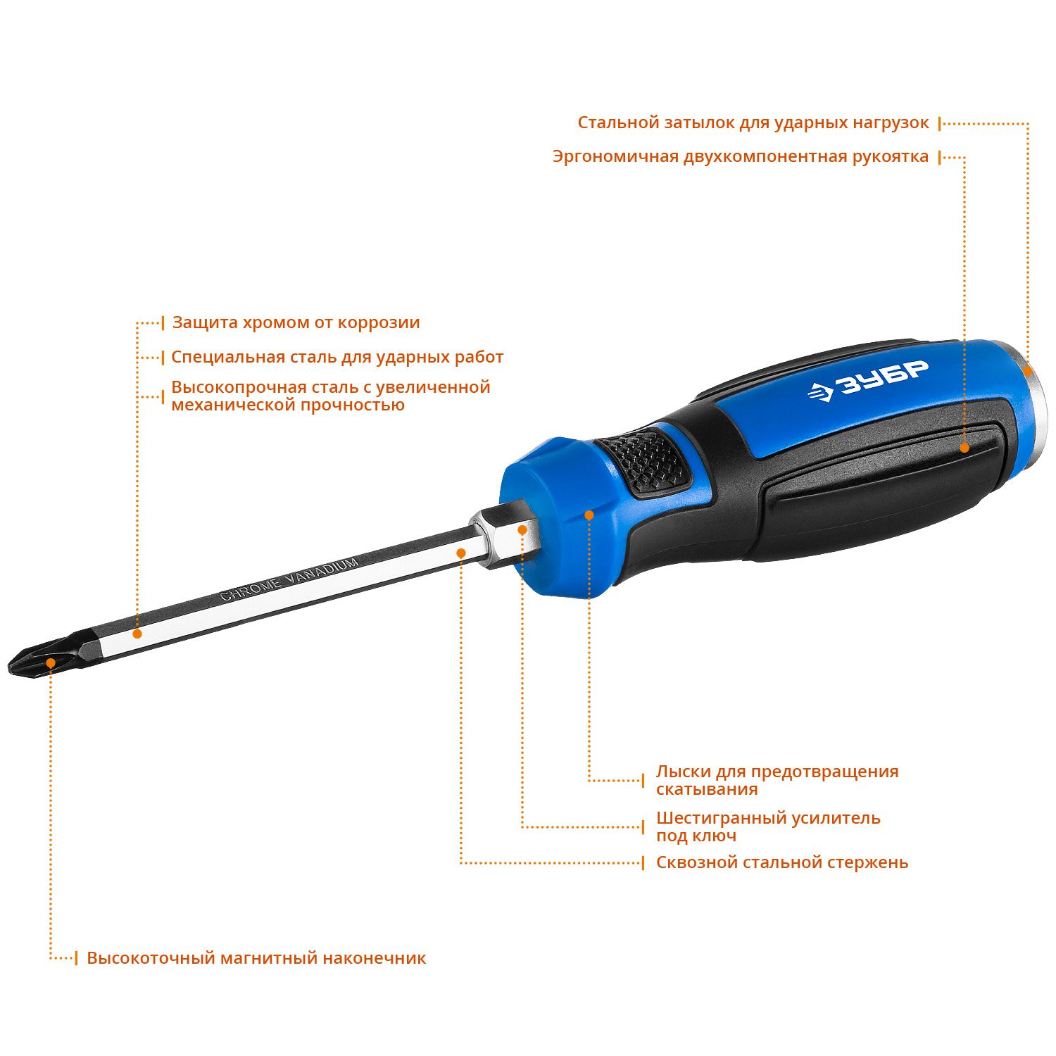 • Высокопрочная Cr-V сталь с увеличенной механической прочностью