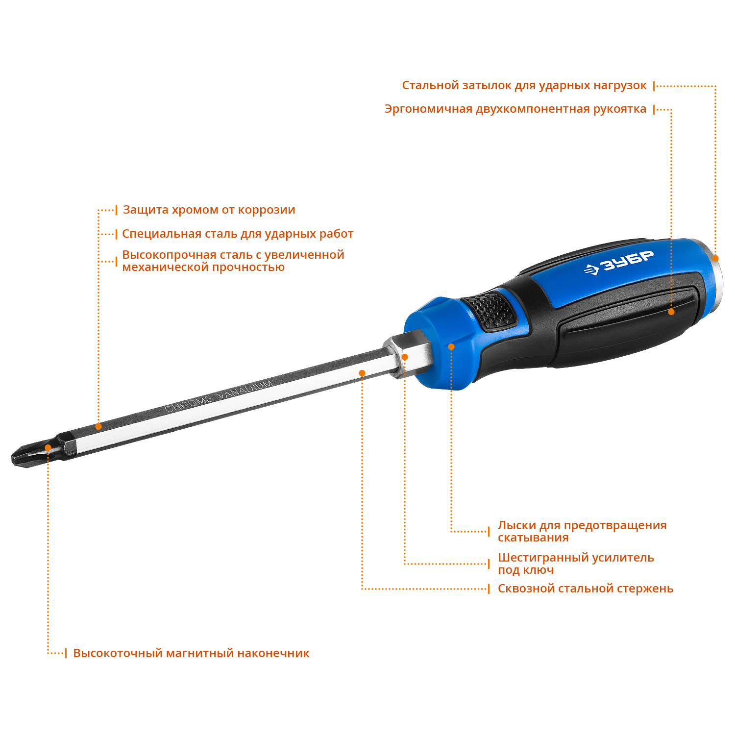 • Высокопрочная Cr-V сталь с увеличенной механической прочностью