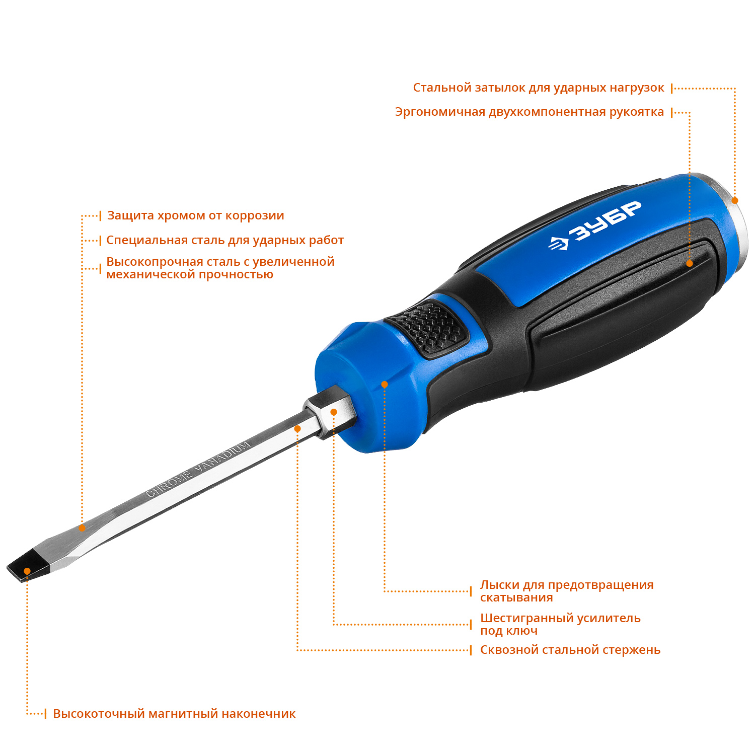 • Высокопрочная Cr-V сталь с увеличенной механической прочностью
