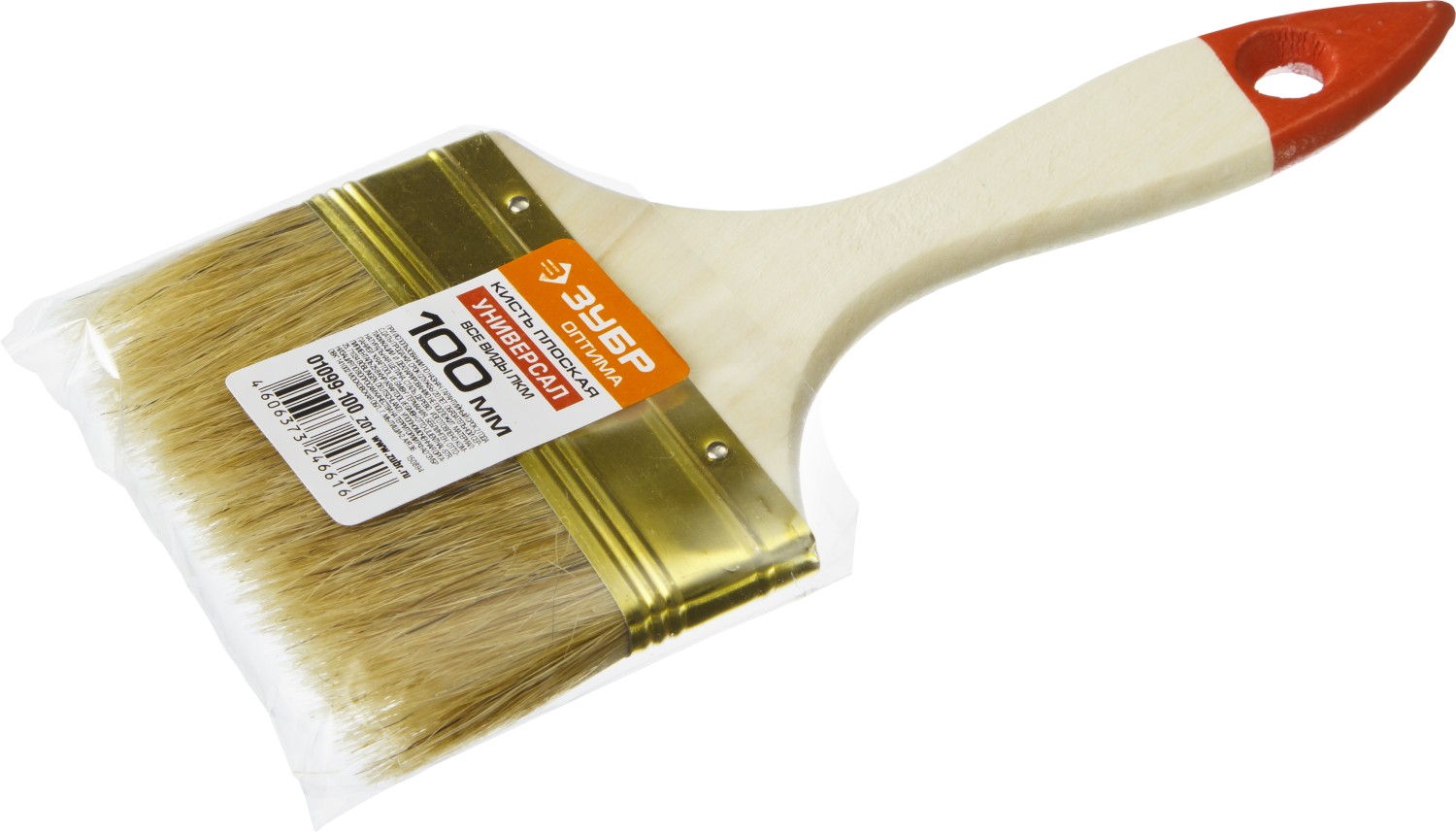 ЗУБР УНИВЕРСАЛ, 100 мм, 4″, светлая натуральная щетина, деревянная ручка, плоская кисть (01099-100)