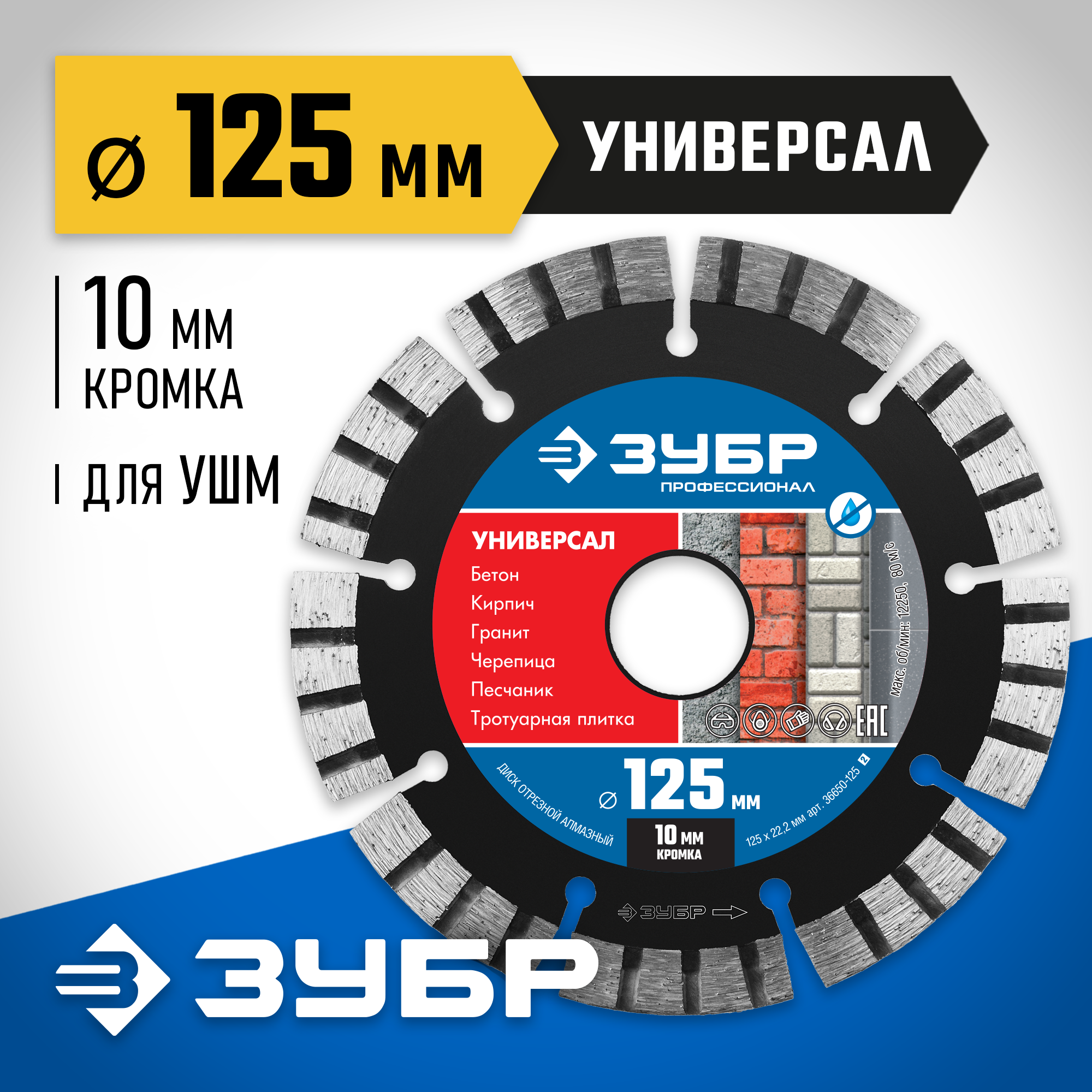 Исключительно высокий уровень качества отрезных алмазных дисков ЗУБР гарантирован комплексной системой контроля всего процесса производства: от качества поступающего сырья до готовой продукции. Корпуса алмазных дисков изготовлены из прочной легированной стали, способной выдержать значительную механическую нагрузку и высокую температуру.