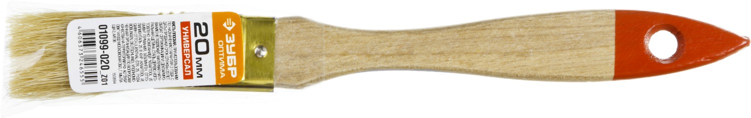 ЗУБР УНИВЕРСАЛ, 20 мм, светлая щетина, деревянная ручка, плоская кисть (01099-020)