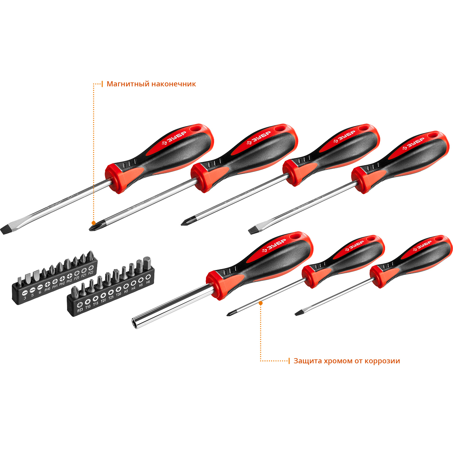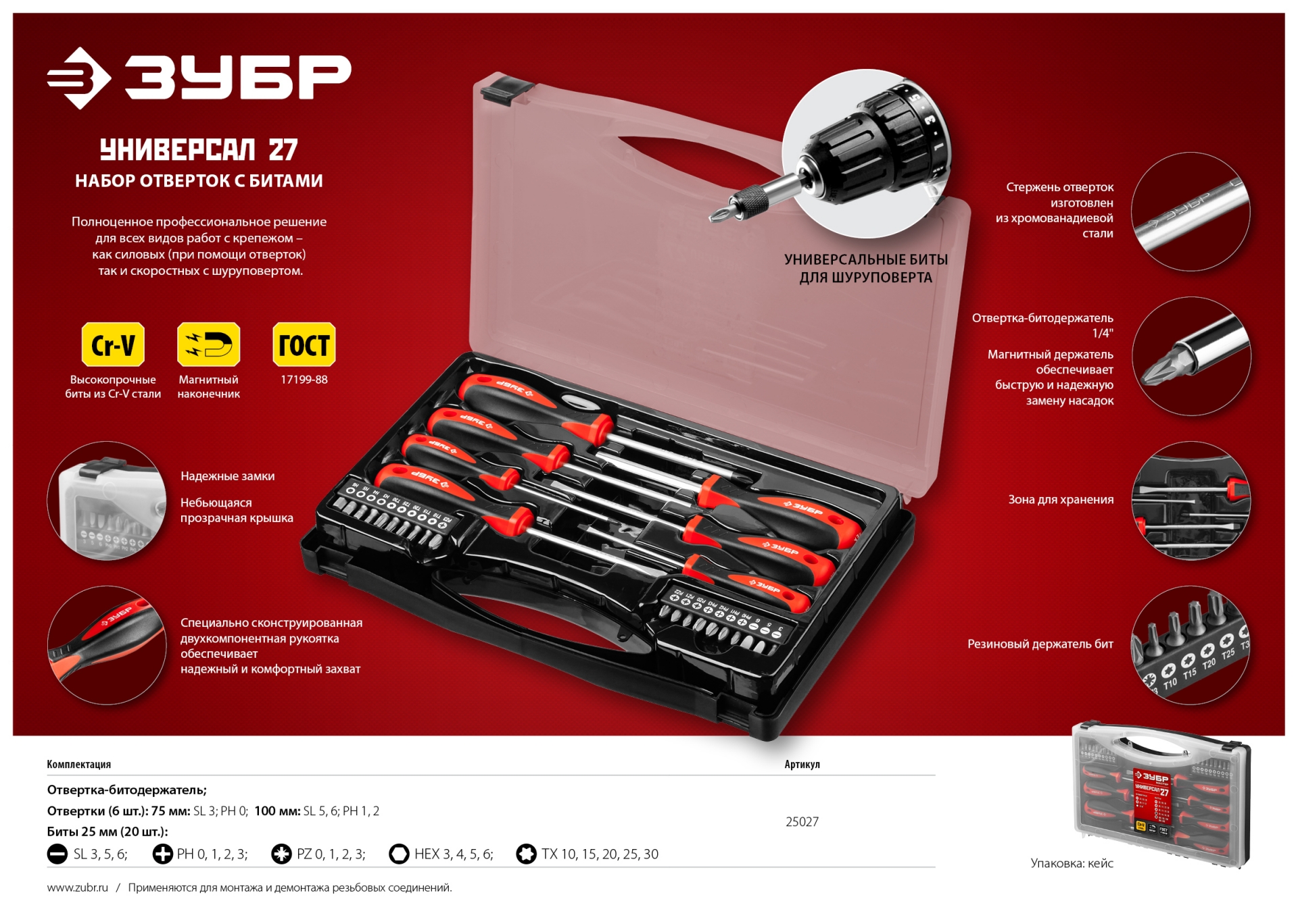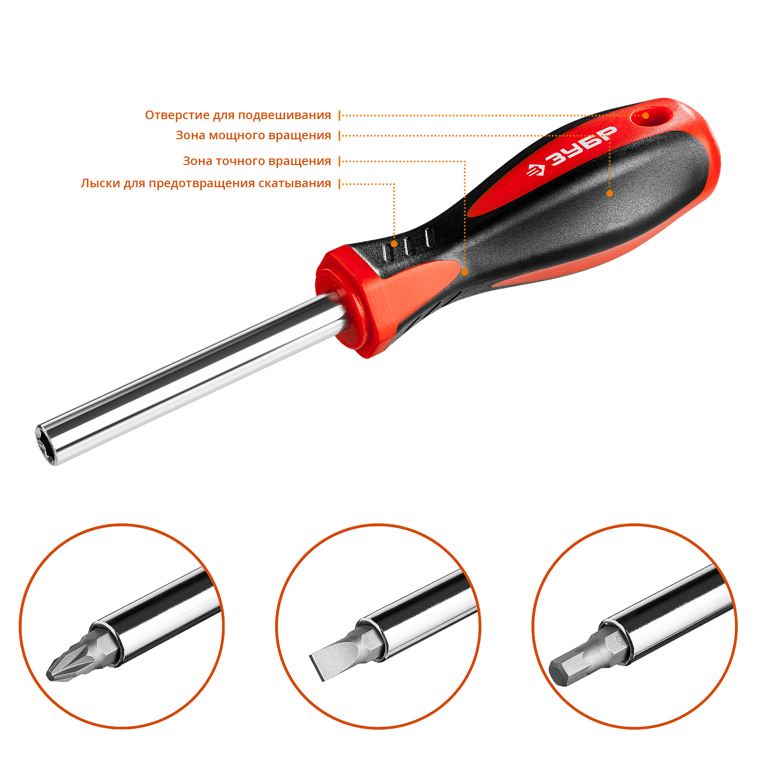 Отвертки выдерживают высокие нагрузки, благодаря высококачественной хромованадиевой стали, закаленной по особой технологии. Двухкомпонентная рукоятка обеспечивает надежный хват и удобство работы