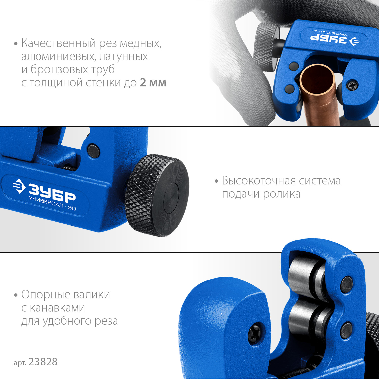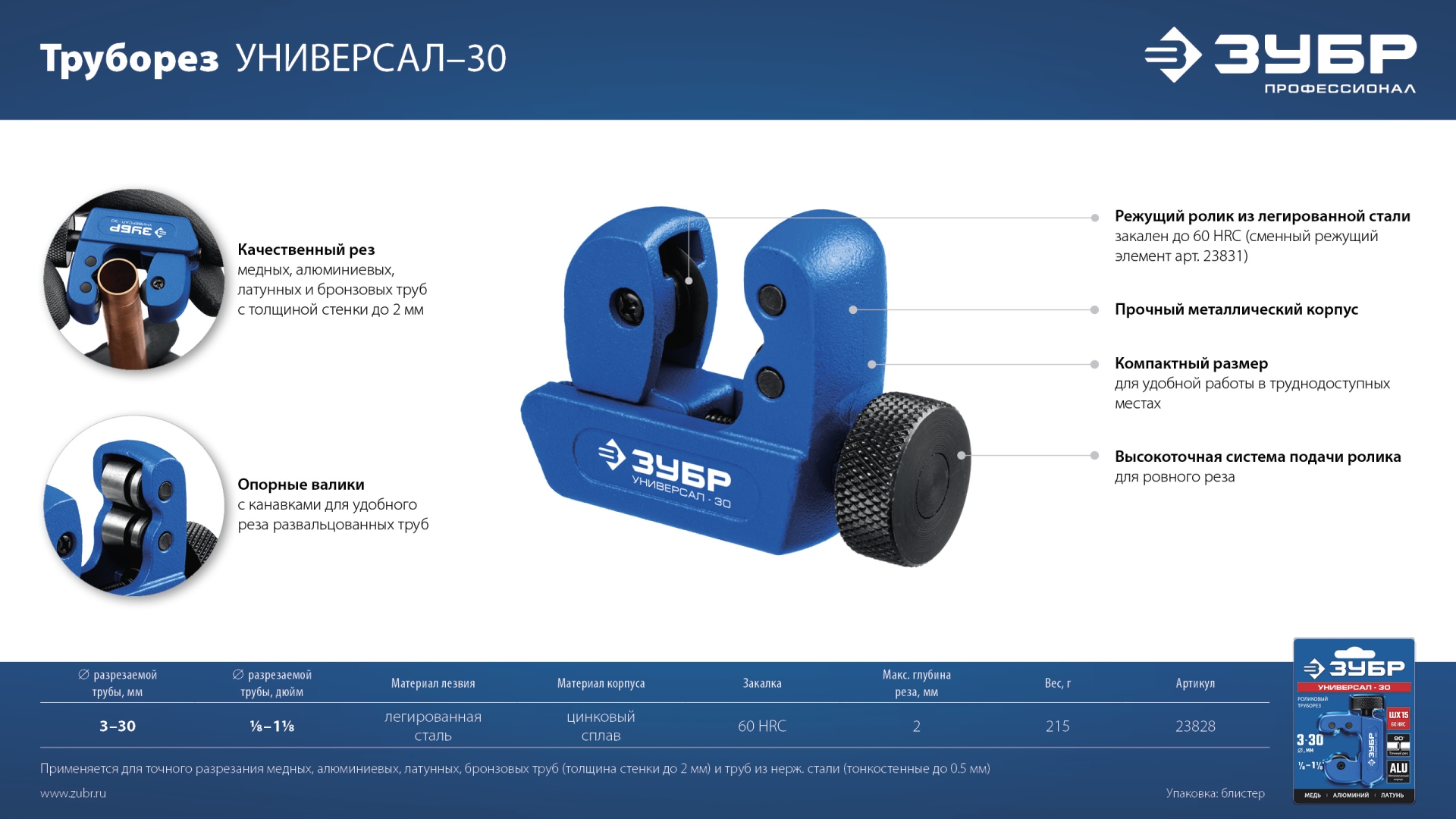 Универсальный инструмент для резки труб из цветных металлов диаметром 3-30 мм. Специально разработанная компактная конструкция облегчает работу в трудно-доступных местах и в ограниченном пространстве (мин 4,5 см от трубы).
