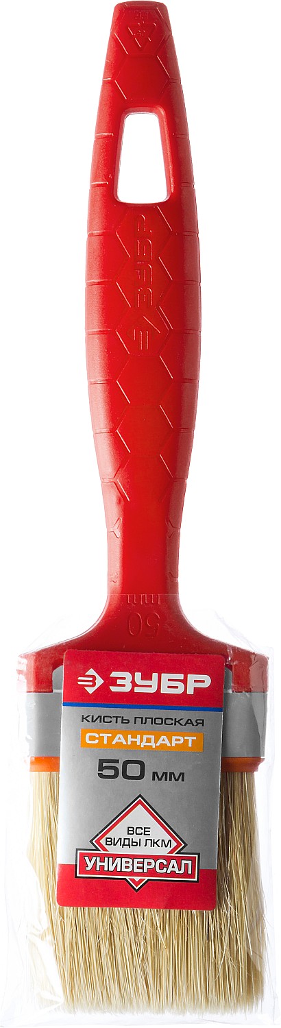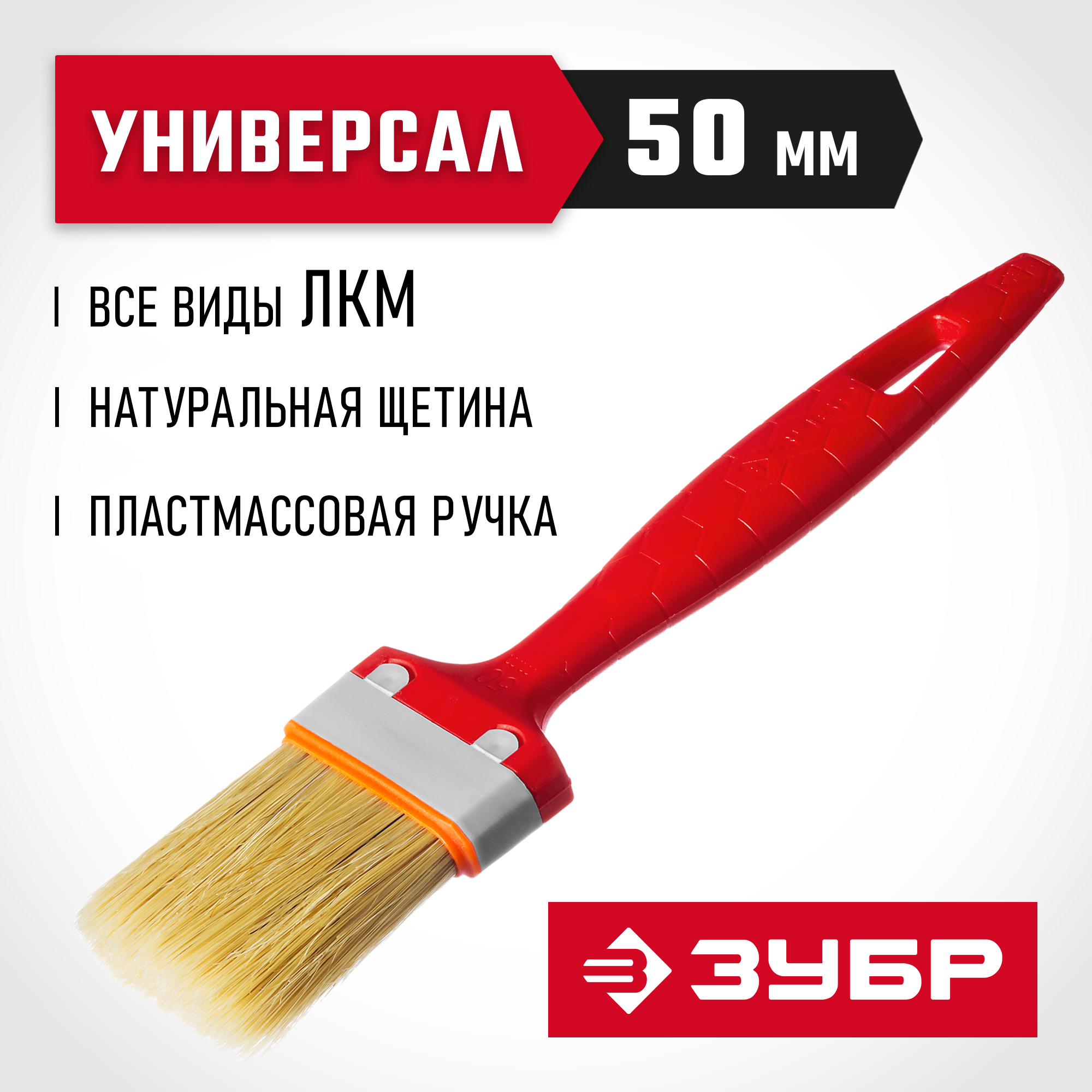 ЗУБР УНИВЕРСАЛ, 50 мм, 2″, светлая натуральная щетина, пластмассовая ручка, все виды ЛКМ, плоская кисть (01015-050)
