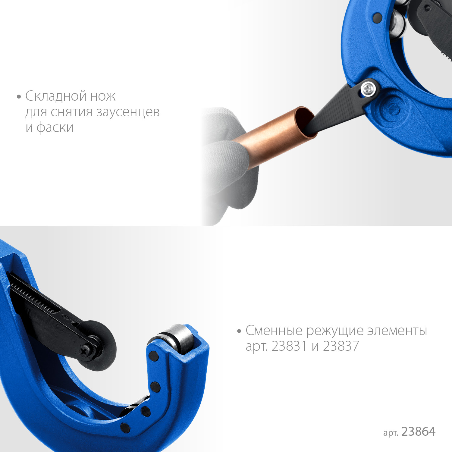 Универсальный инструмент для резки труб из цветных металлов и пластика диаметром 6-64 мм. Система быстрой подачи ролика и встроенный нож для снятия фаски значительно ускоряют и упрощают рабочий процесс.