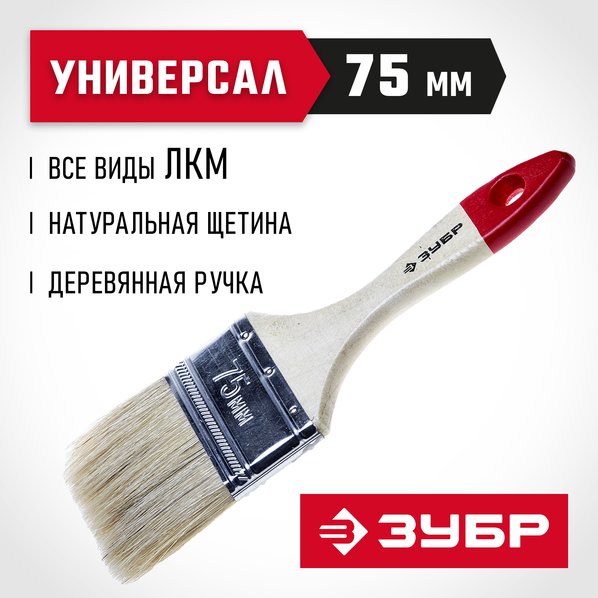 ЗУБР УНИВЕРСАЛ, 75 мм, 3″, светлая натуральная щетина, деревянная ручка, все виды ЛКМ, плоская кисть (4-01001-075)