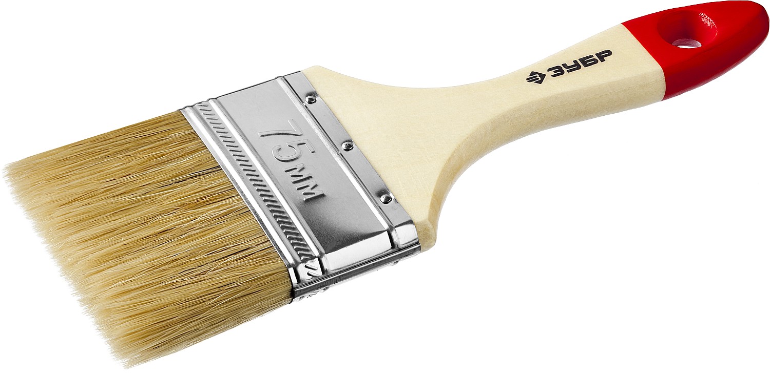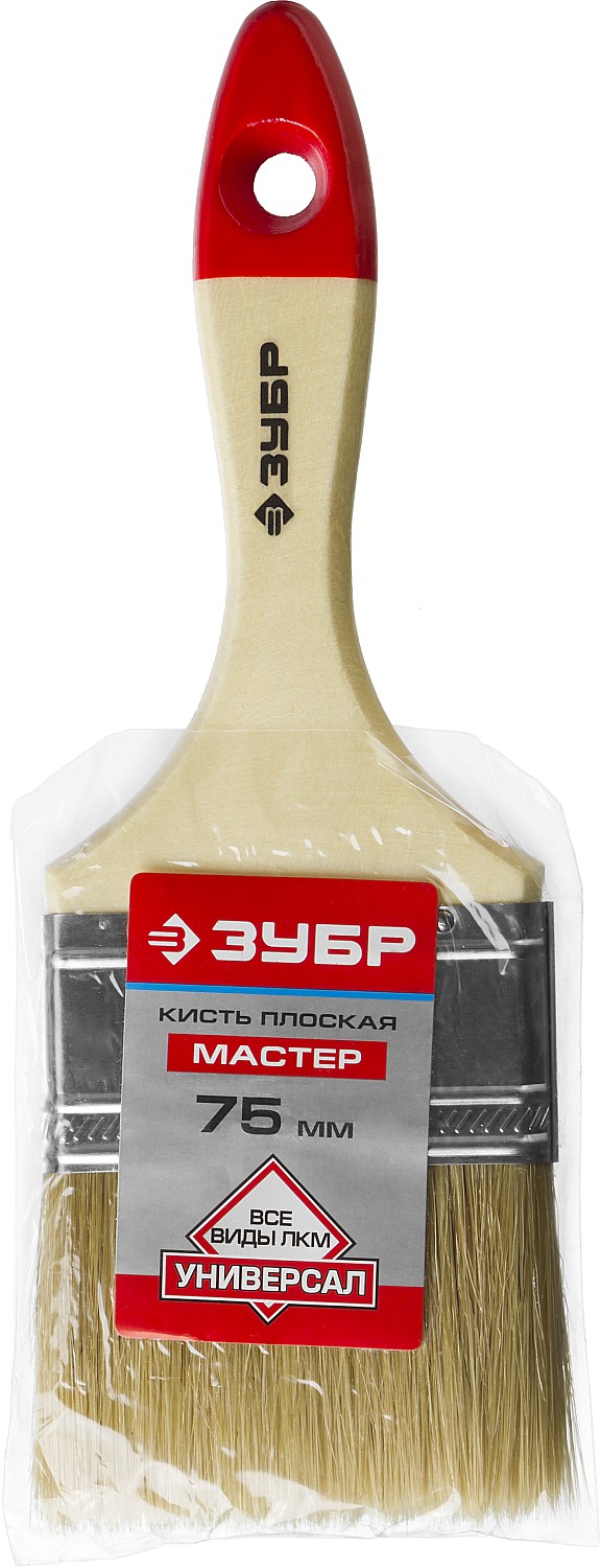 ЗУБР УНИВЕРСАЛ, 75 мм, 3″, светлая натуральная щетина, деревянная ручка, все виды ЛКМ, плоская кисть (4-01003-075)