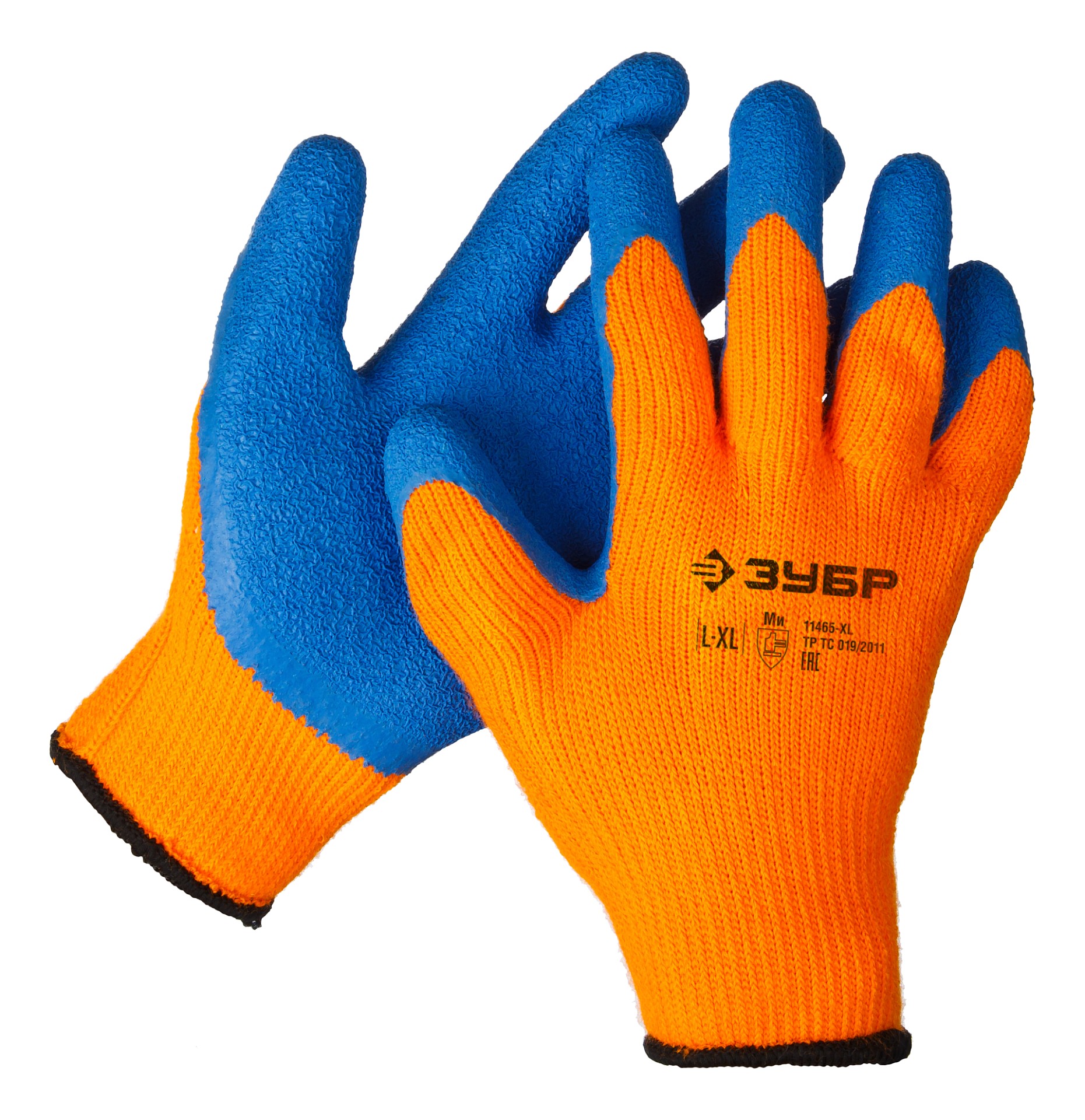 ЗУБР УРАЛ, L-XL, акриловые перчатки сигнального цвета, рельефное латексное покрытие, утеплённые, 10 класс, Профессионал (11465-XL)