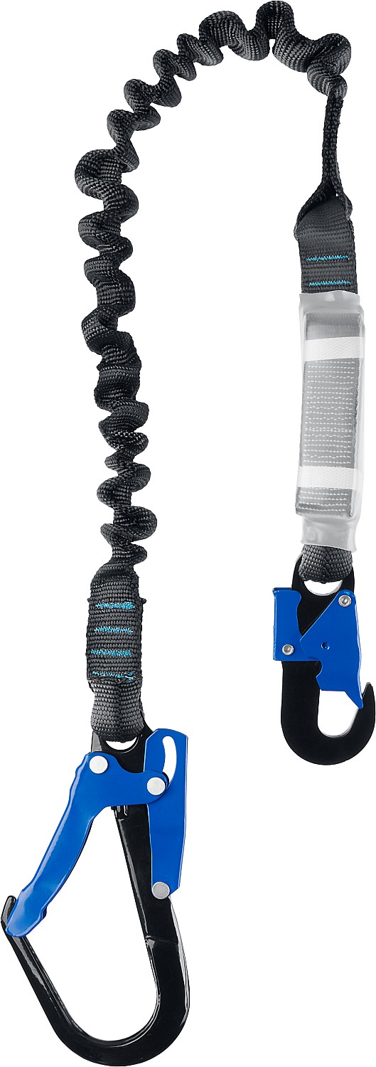 Строп, в сочетании со страховочным поясом или привязью, служит для остановки падения человека при работе на высоте.