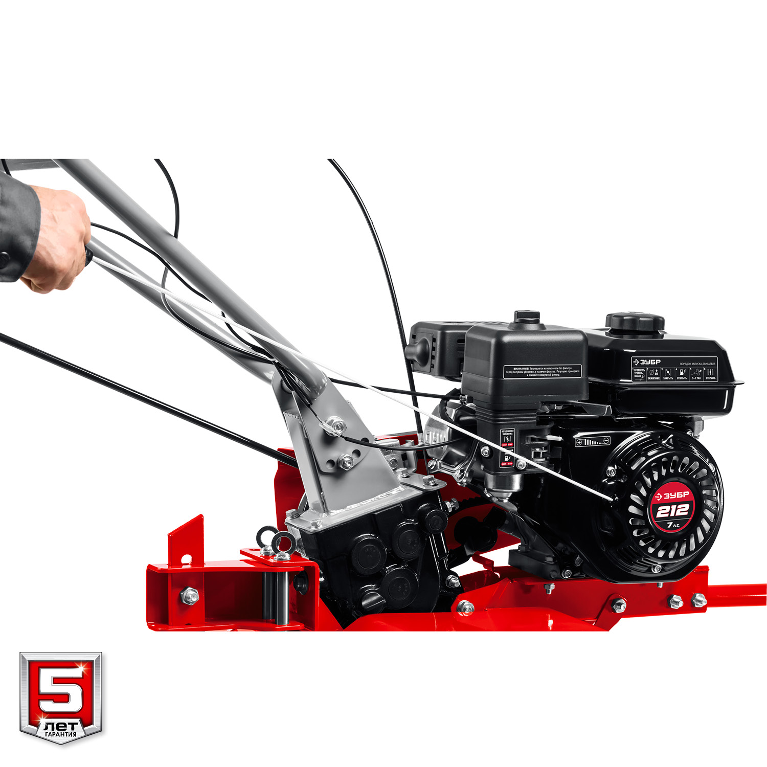 - Универсальная сцепка позволяет использовать различное навесное оборудование