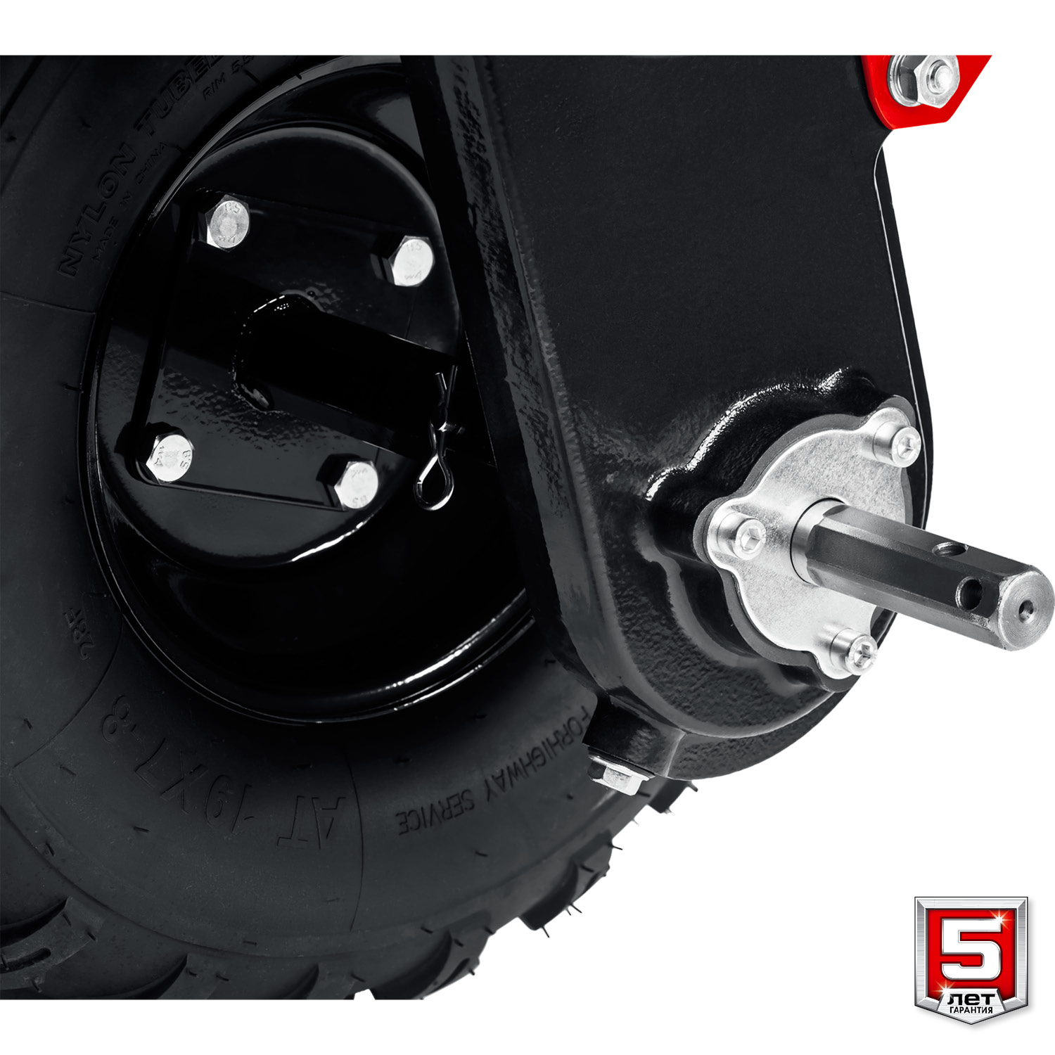 - Кронштейн для крепления навесного оборудования (диаметр 30 мм) и шкив отбора мощности позволяют использовать широкую гамму навесного оборудования: снегоуборщик, щетку, роторную косилку