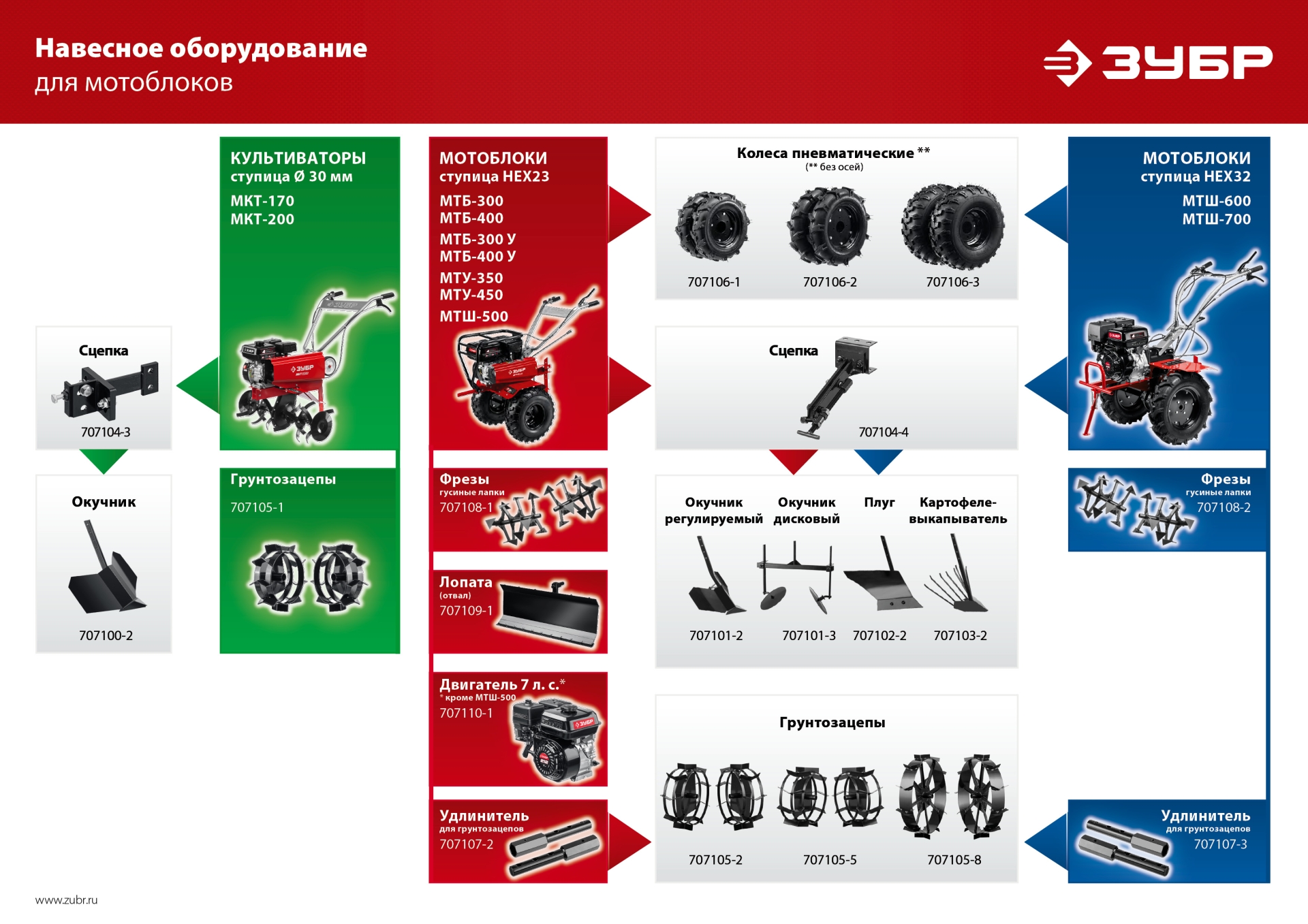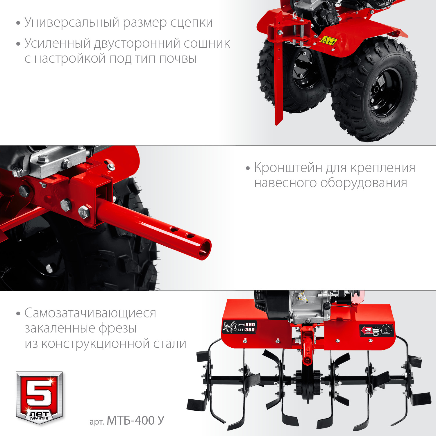 - Универсальная сцепка позволяет использовать различное навесное оборудование