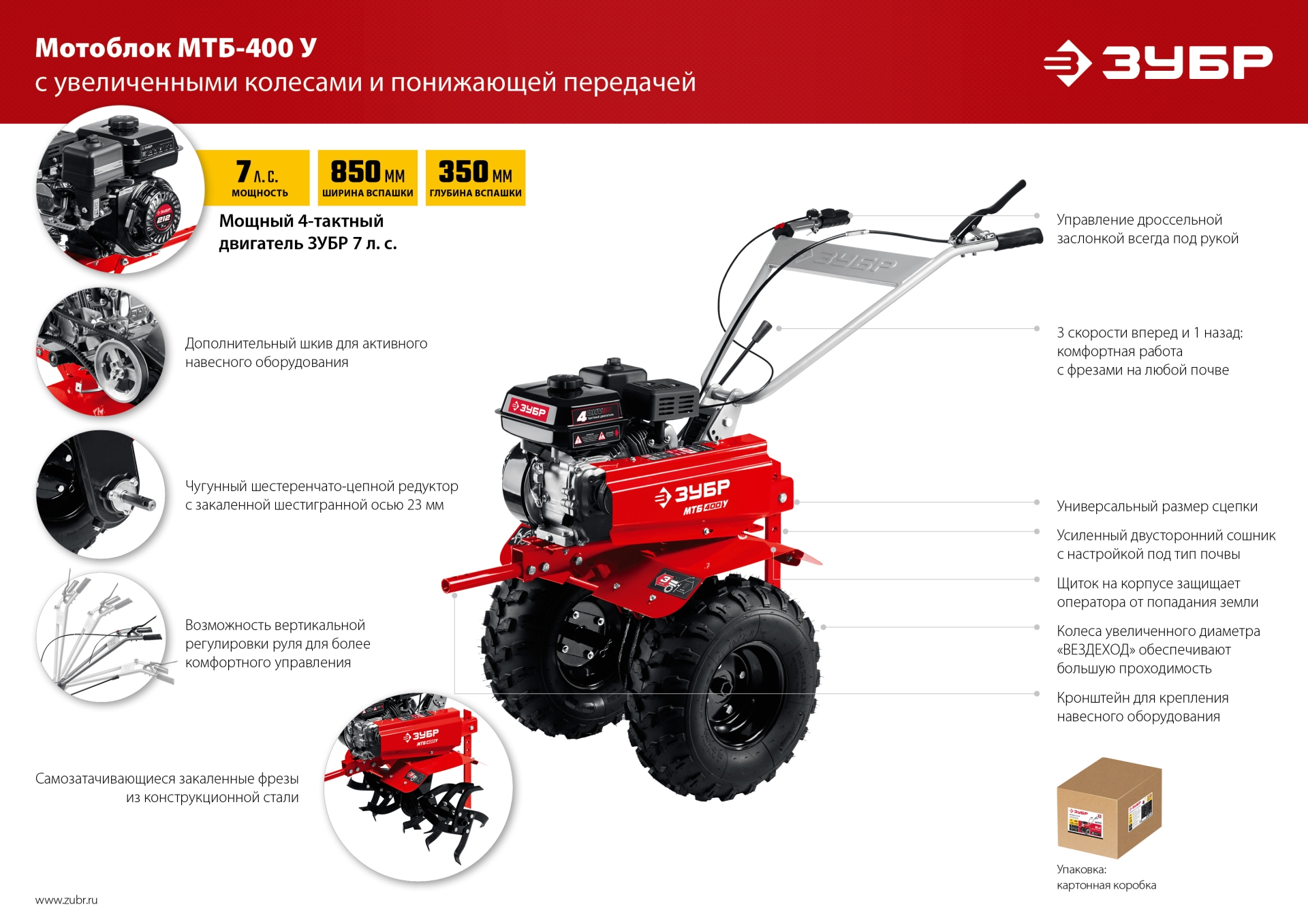 - Конструкция мотоблока позволяет использовать его с различными навесными оборудованием