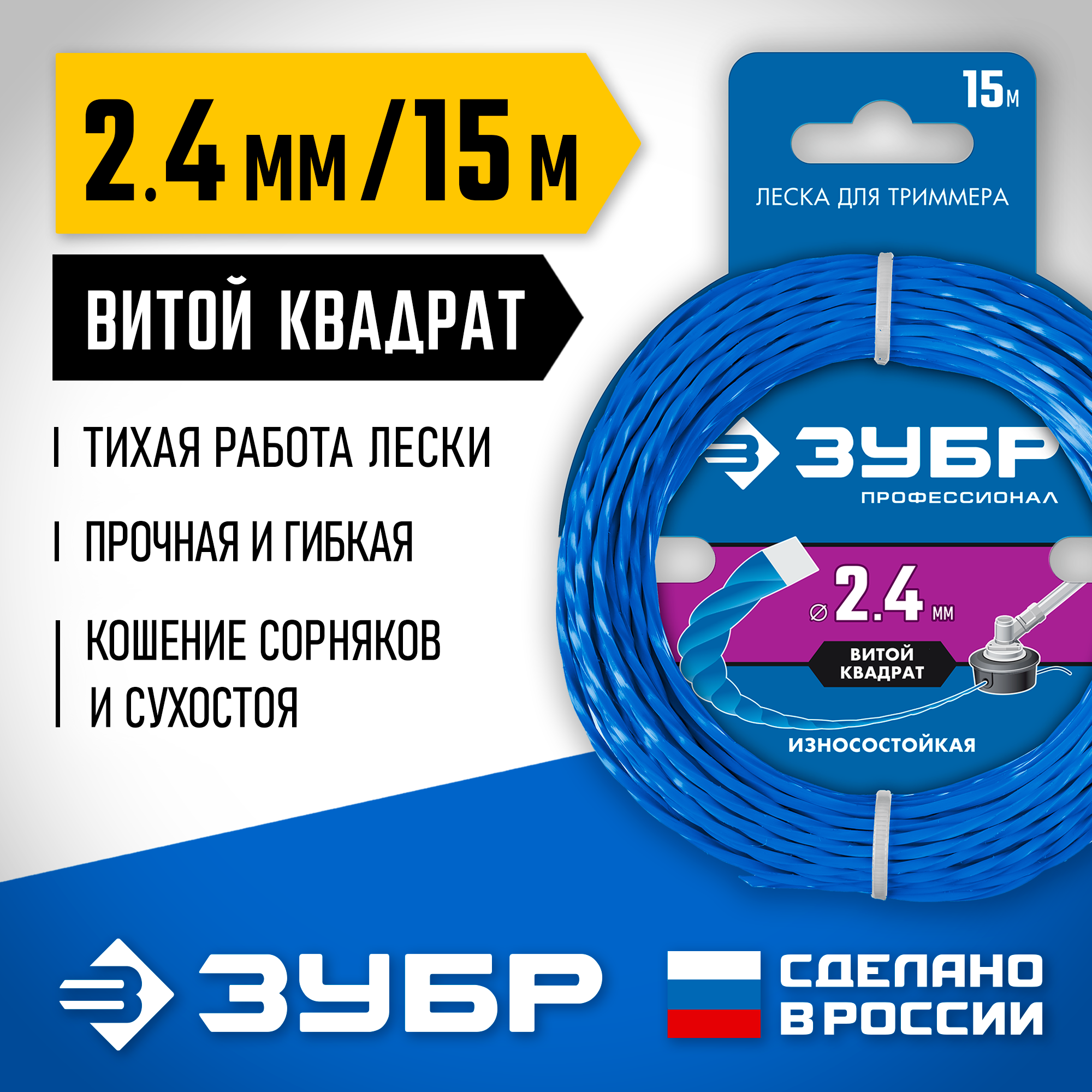 - Витая структура обеспечивает бесшумную работу лески