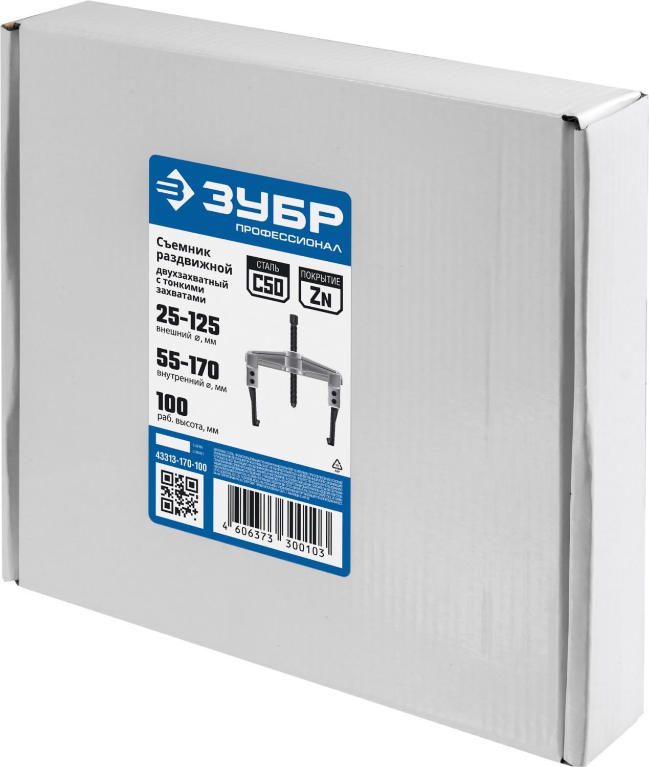 ЗУБР внешний d 25 - 125 мм внутренний d 55 - 170 мм, раздвижной двухзахватный съемник с тонкими захватами, Профессионал (43313-170-100)