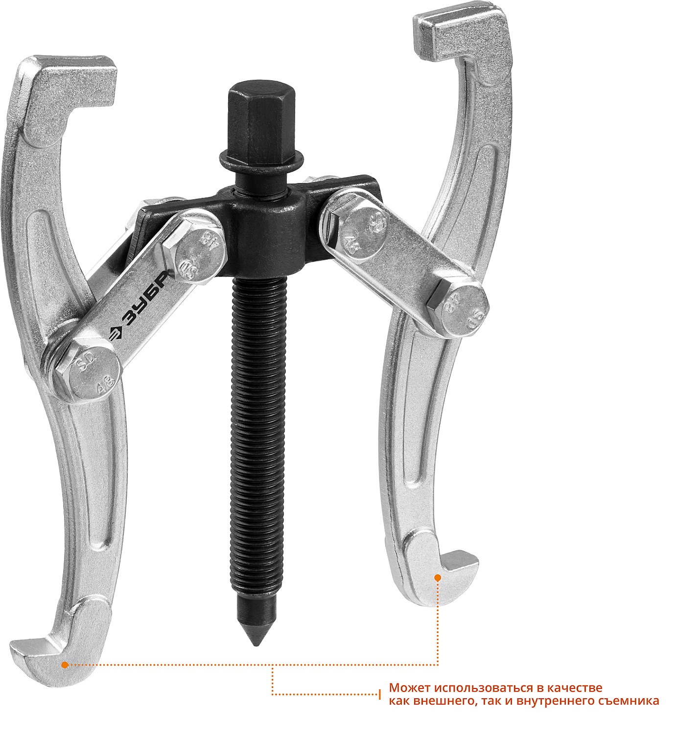 Захваты съемника выкованы из качественной инструментальной стали, что обеспечивает долгий срок службы при работе с высокими нагрузками. Позволяет работать с широким рядом узлов