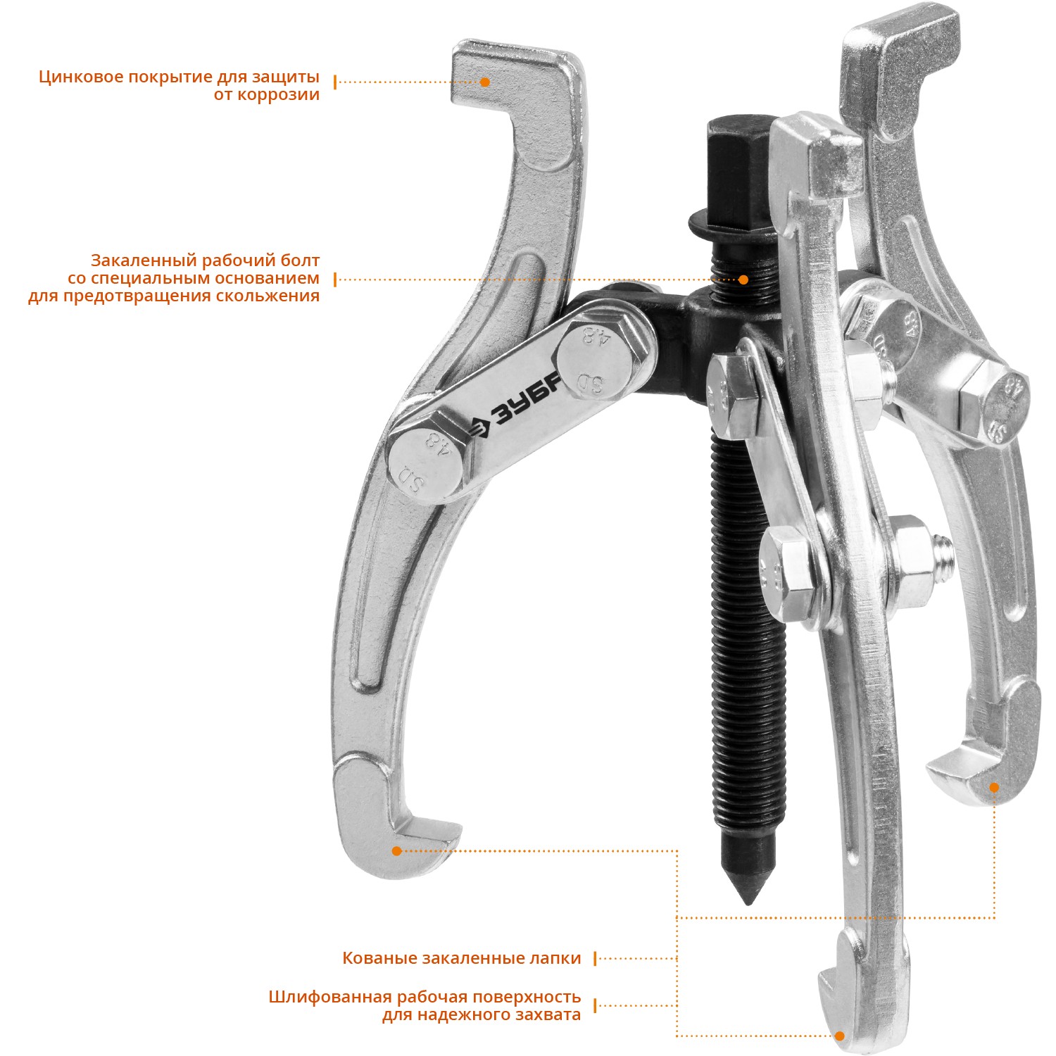 ЗУБР внешний d 25 - 160 мм, внутренний d 45 - 135 мм, шарнирный трехзахватный съемник, Профессионал (43318-110)
