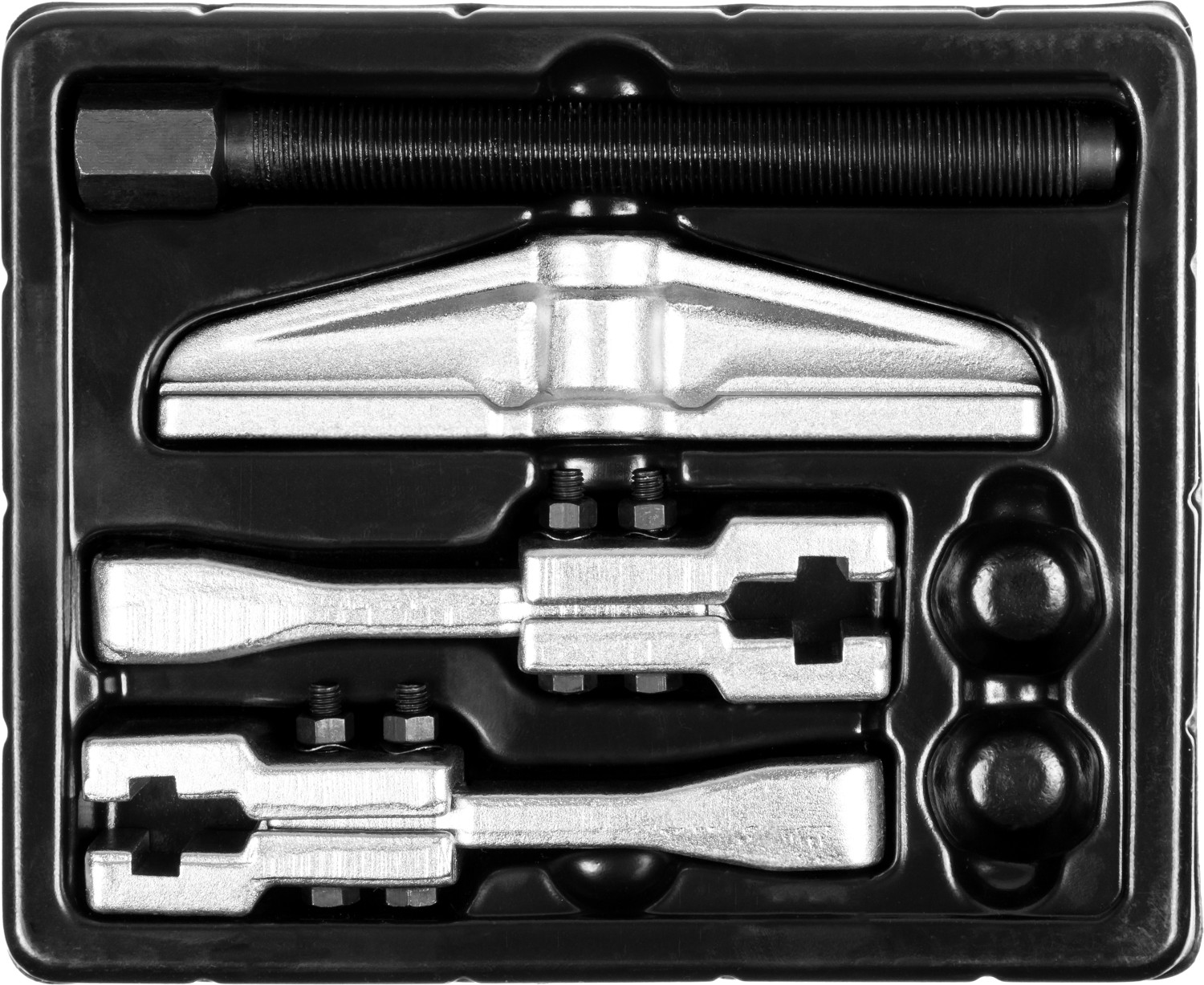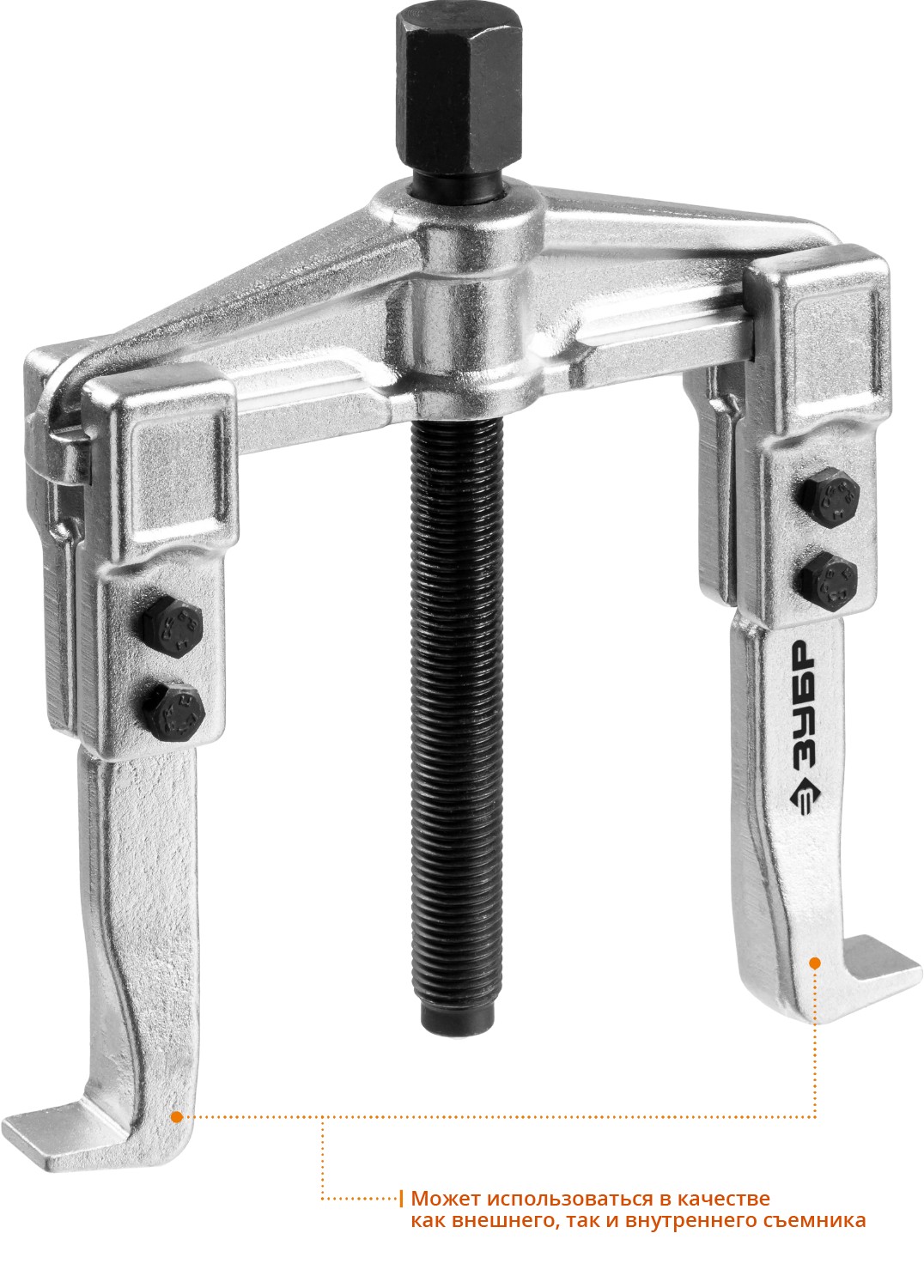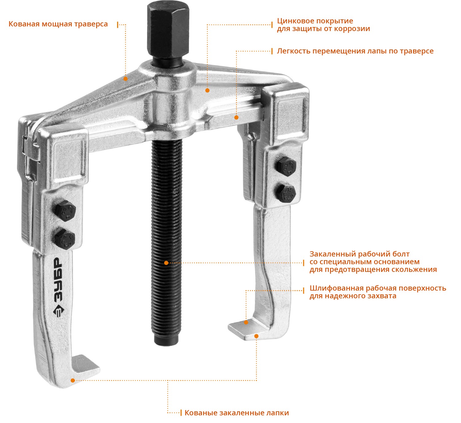 Захваты съемника выкованы из качественной инструментальной стали, что обеспечивает долгий срок службы при работе с высокими нагрузками. Позволяет работать с широким рядом узлов