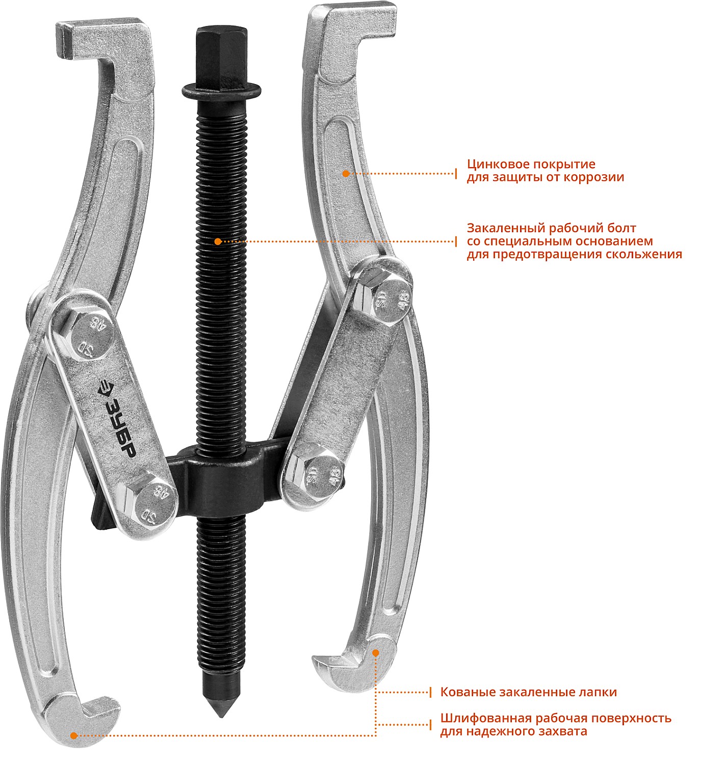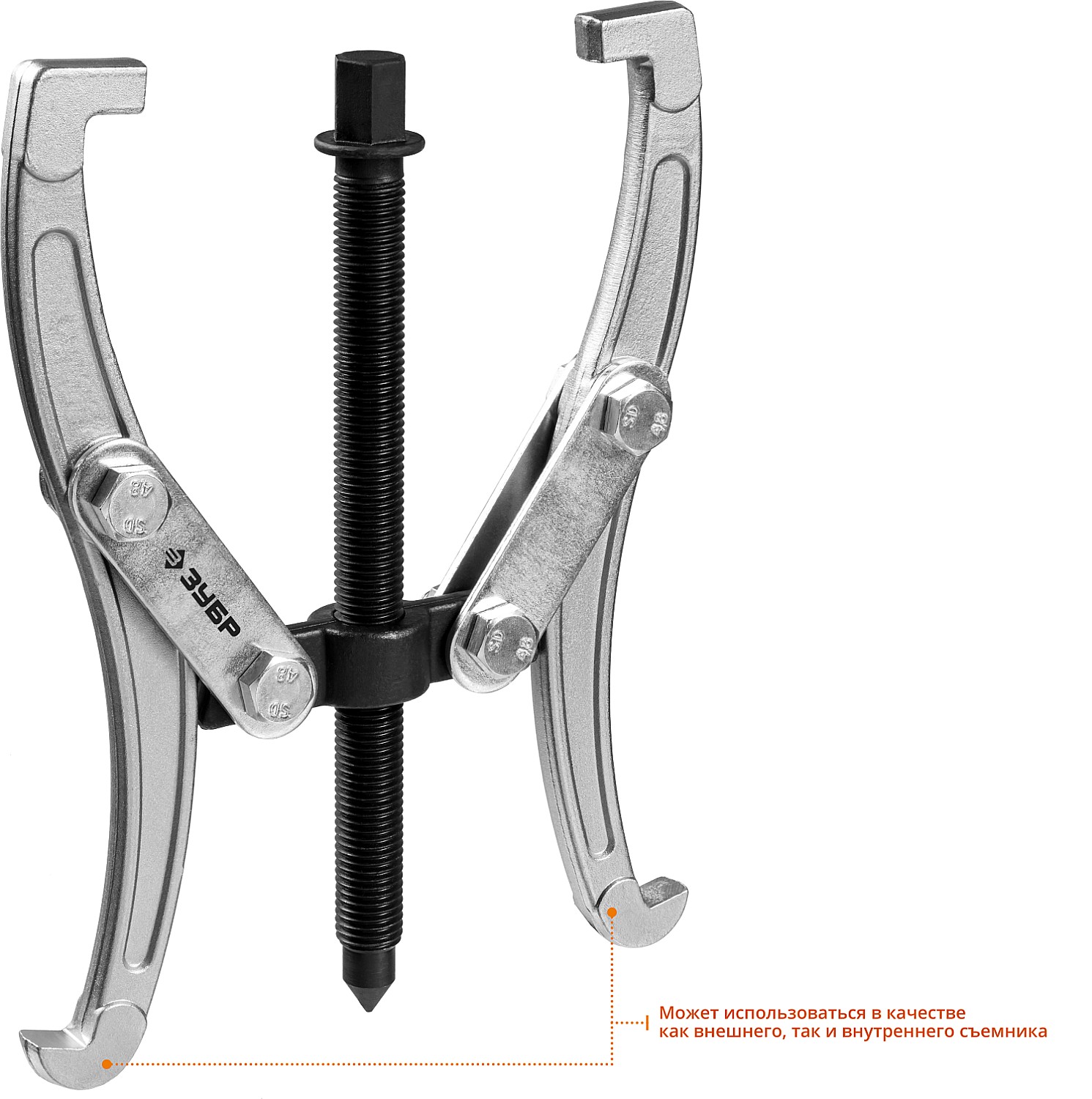 Захваты съемника выкованы из качественной инструментальной стали, что обеспечивает долгий срок службы при работе с высокими нагрузками. Позволяет работать с широким рядом узлов