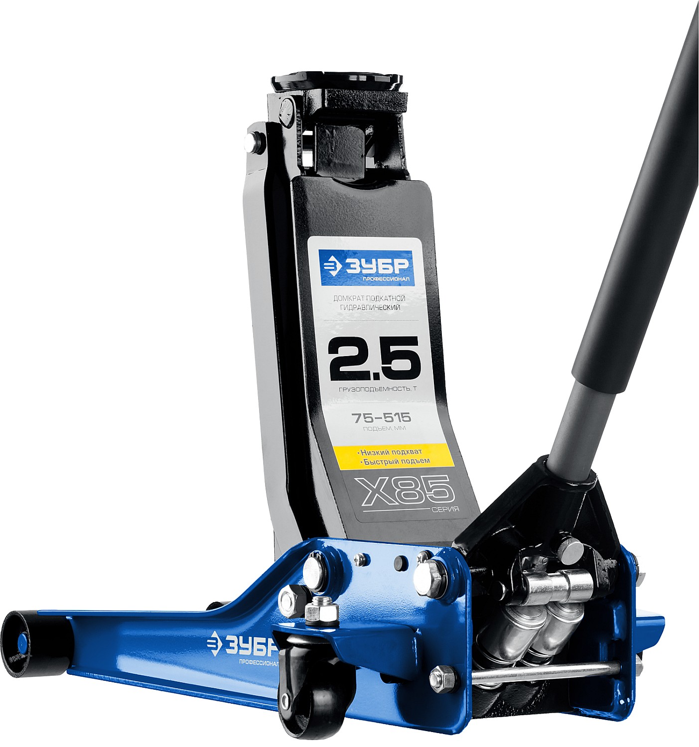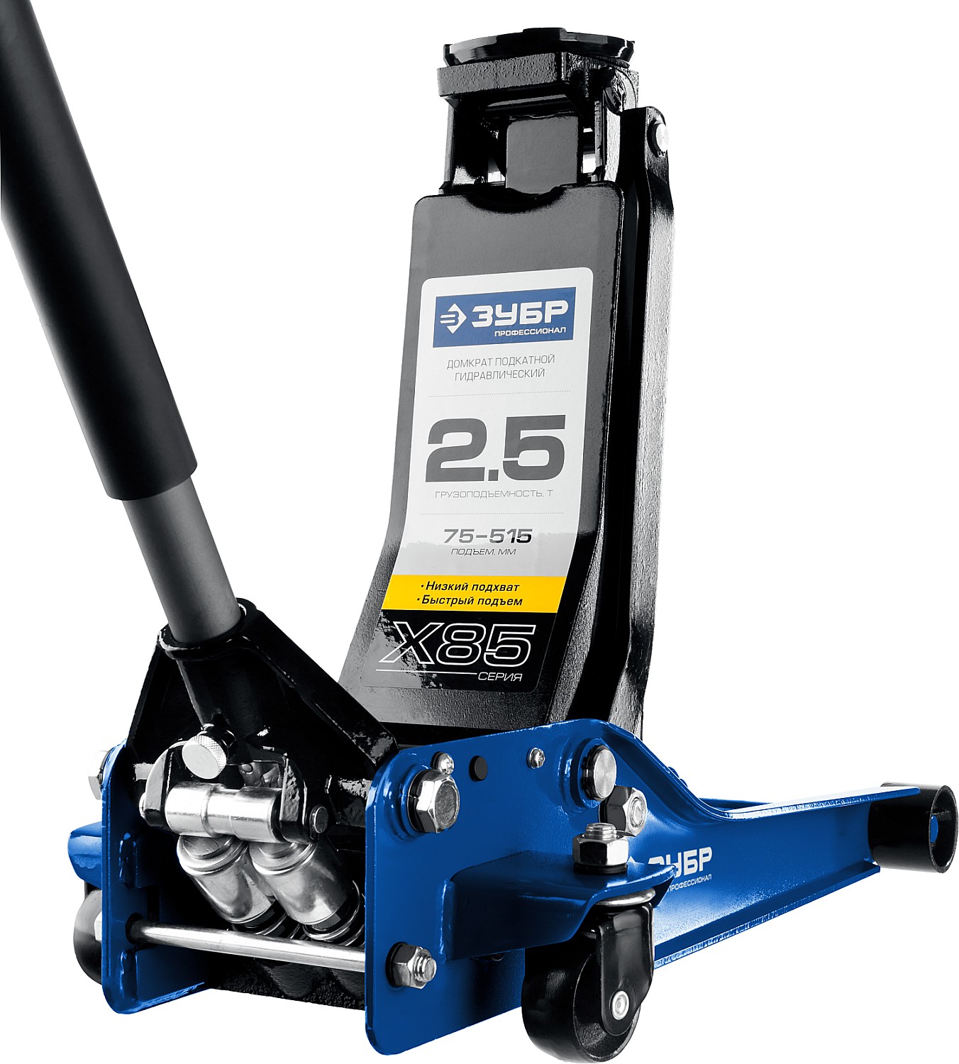 - Домкрат обладает двухпоршневым гидронасосом для быстрого подъема груза.