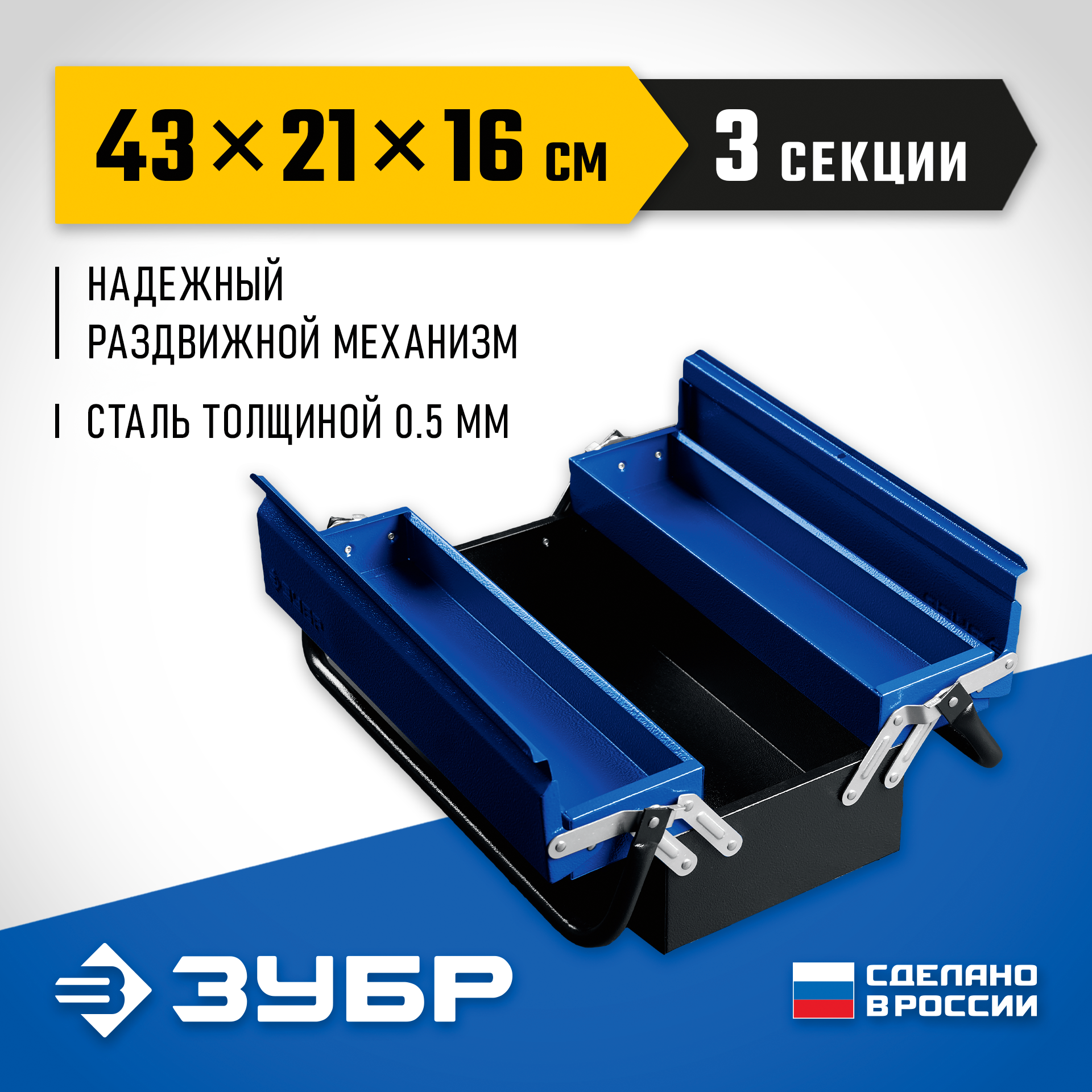 Три секции для компактного и удобного хранения и транспортировки различного ручного инструмента.
