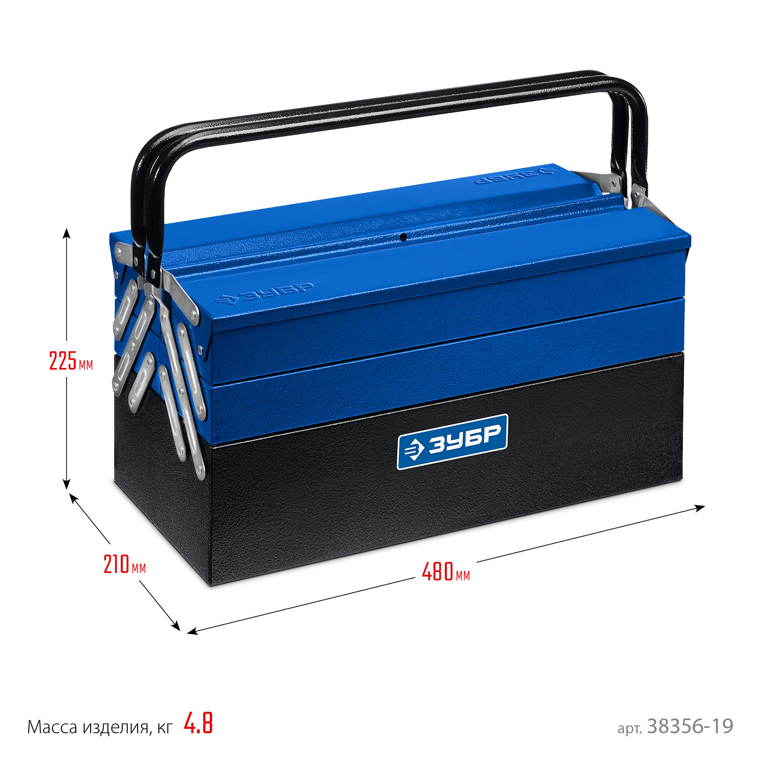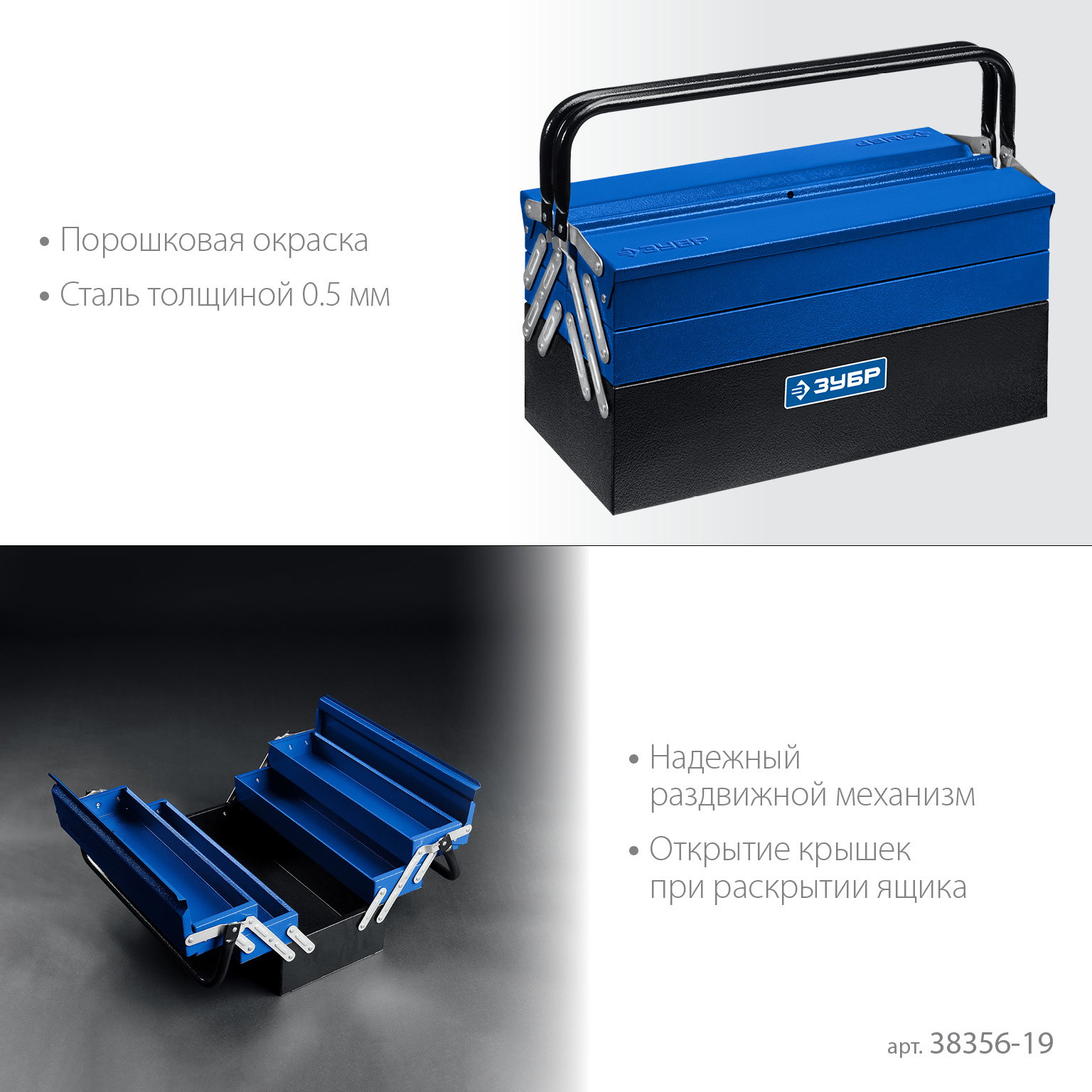 ЗУБР ЯРУС-5/19, 470 х 210 х 225 мм, (19″), Металлический раздвижной ящик для инструментов, Профессионал (38356-19)