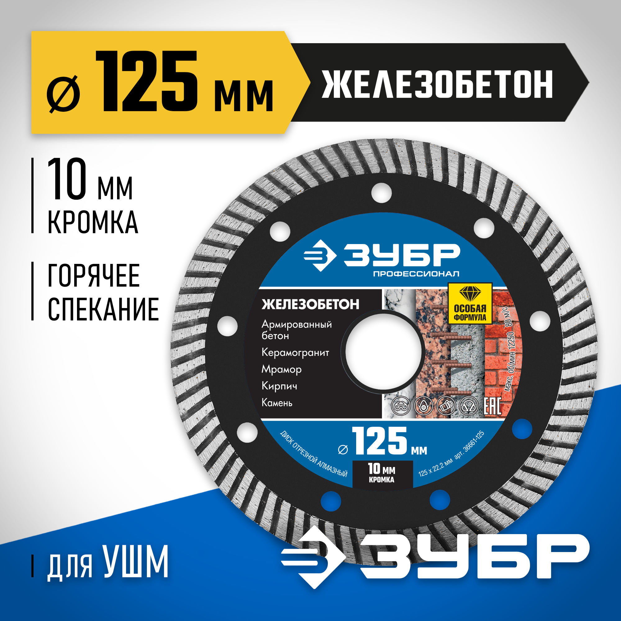 Исключительно высокий уровень качества отрезных алмазных дисков ЗУБР гарантирован комплексной системой контроля всего процесса производства: от качества поступающего сырья до готовой продукции. Корпуса алмазных дисков изготовлены из прочной легированной стали, способной выдержать значительную механическую нагрузку и высокую температуру.