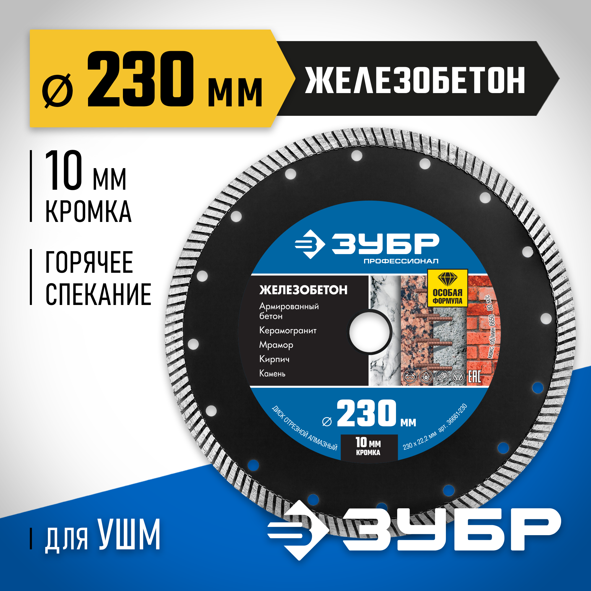 Исключительно высокий уровень качества отрезных алмазных дисков ЗУБР гарантирован комплексной системой контроля всего процесса производства: от качества поступающего сырья до готовой продукции. Корпуса алмазных дисков изготовлены из прочной легированной стали, способной выдержать значительную механическую нагрузку и высокую температуру.