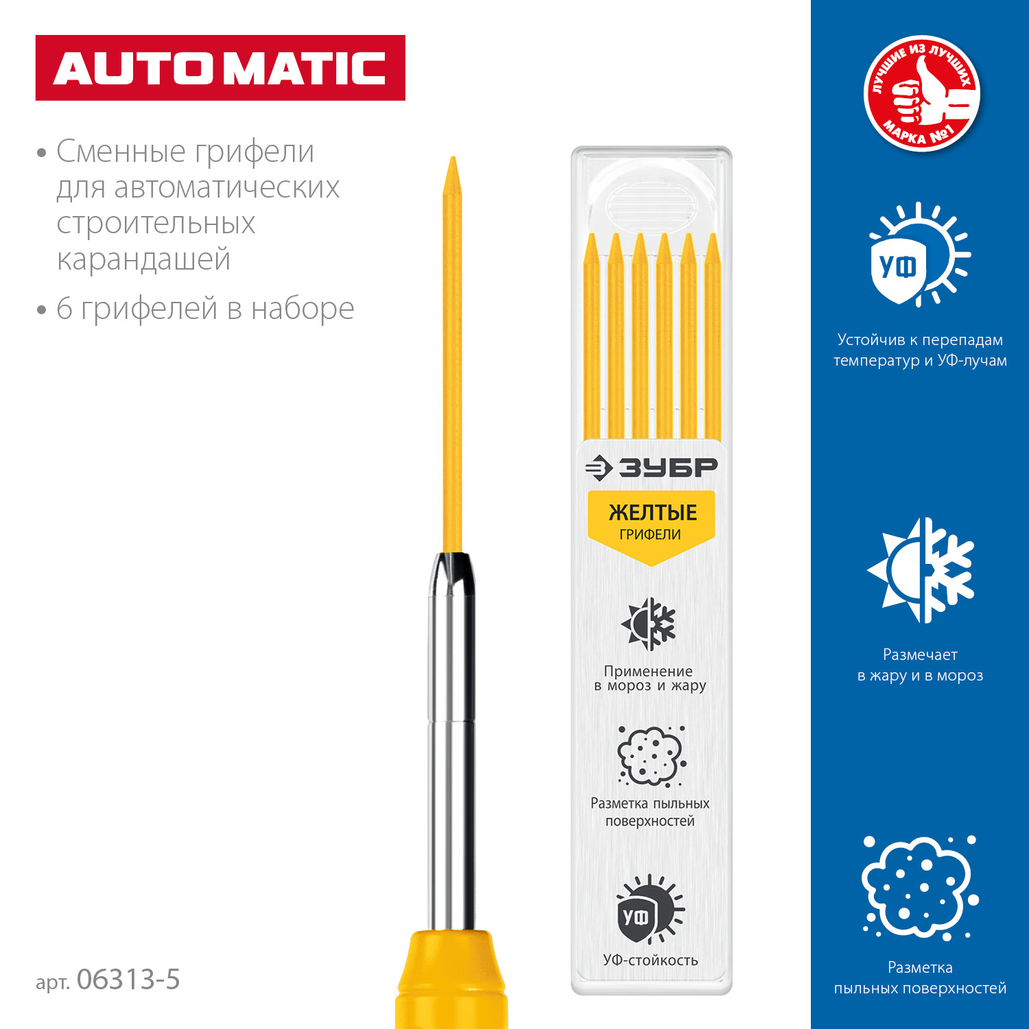 Набор грифелей для карандашей АСК подходият для нанесения разметки на большинство материалов. Не выгорают на солнце, устойчив к температурным перепадам. Безопасы для человека и окружающей среды, т.к. не содержат токсических веществ.