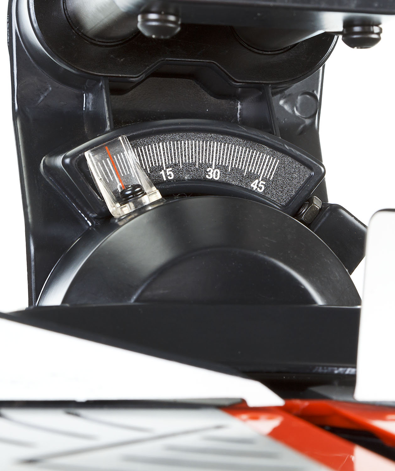 - Фиксирующийся в любом положении поворотный стол и удобная регулировка наклона облегчают установку угла пиления