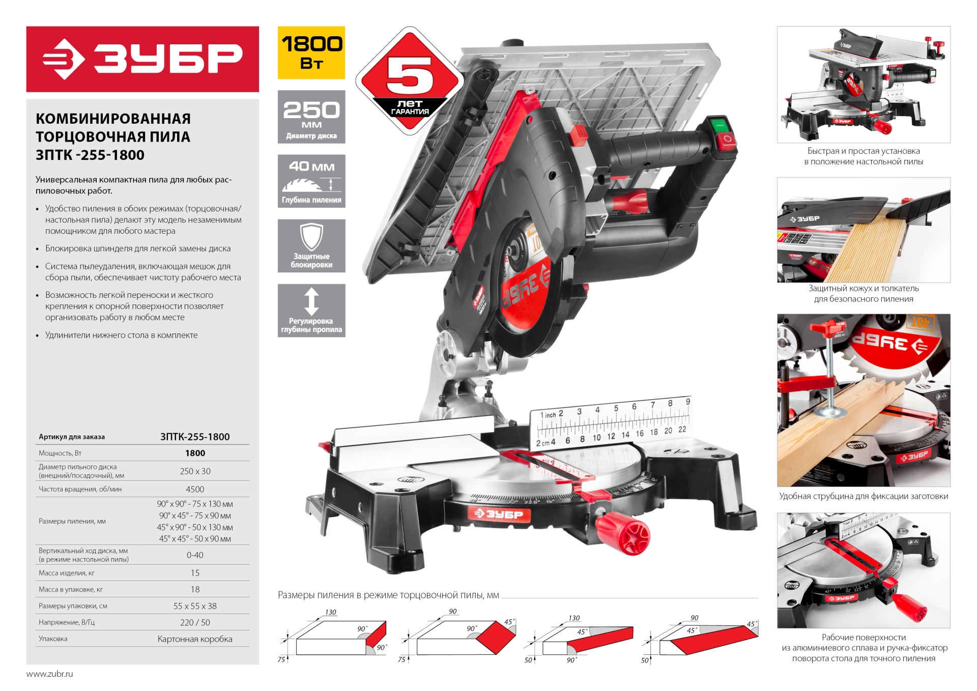 Универсальность ЗПТК-255-1800 для любых распиловочных работ и удобство в обоих режимах делают это изделие незаменимым помощником для любого мастера