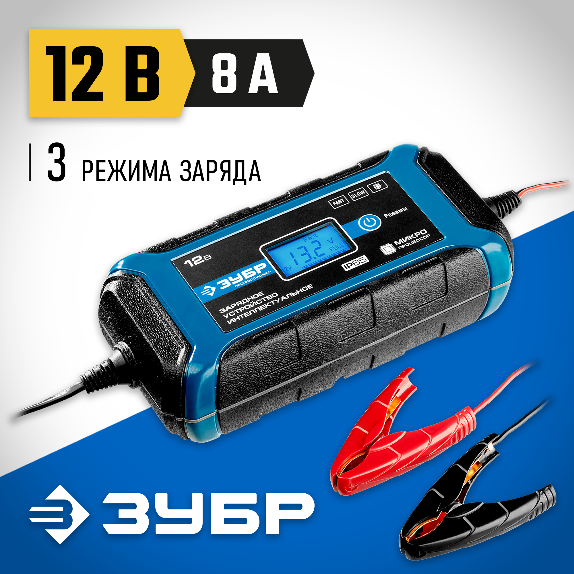 Интеллектуальное зарядное устройство предназначено для зарядки аккумуляторных батарей легковых и грузовых автомобилей, мотоциклов, снегоходов, катеров (лодок), газонокосилок, тракторов, гидроциклов и т.д. Зарядные устройства ЗУБР управляются с помощью микропроцессора. Данные устройства обладают высокой эффективностью и имеют защиту от ошибок, которые может допустить пользователь. Микропроцессор зарядного устройства оценивает состояние батареи и соответствующим образом устанавливает силу зарядного тока и напряжение (в зависимости от типа АКБ и её состояния). Это позволяет наиболее эффективно зарядить аккумулятор и продлить срок его службы.